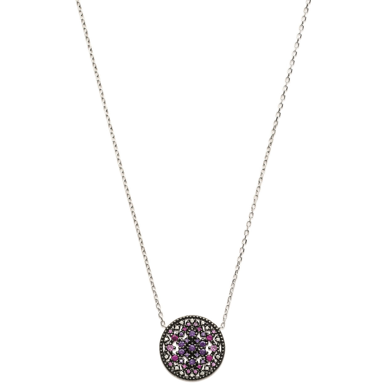 Collier en argent 925/000 rhodié, oxyde de zirconium et pierres synthétiques.