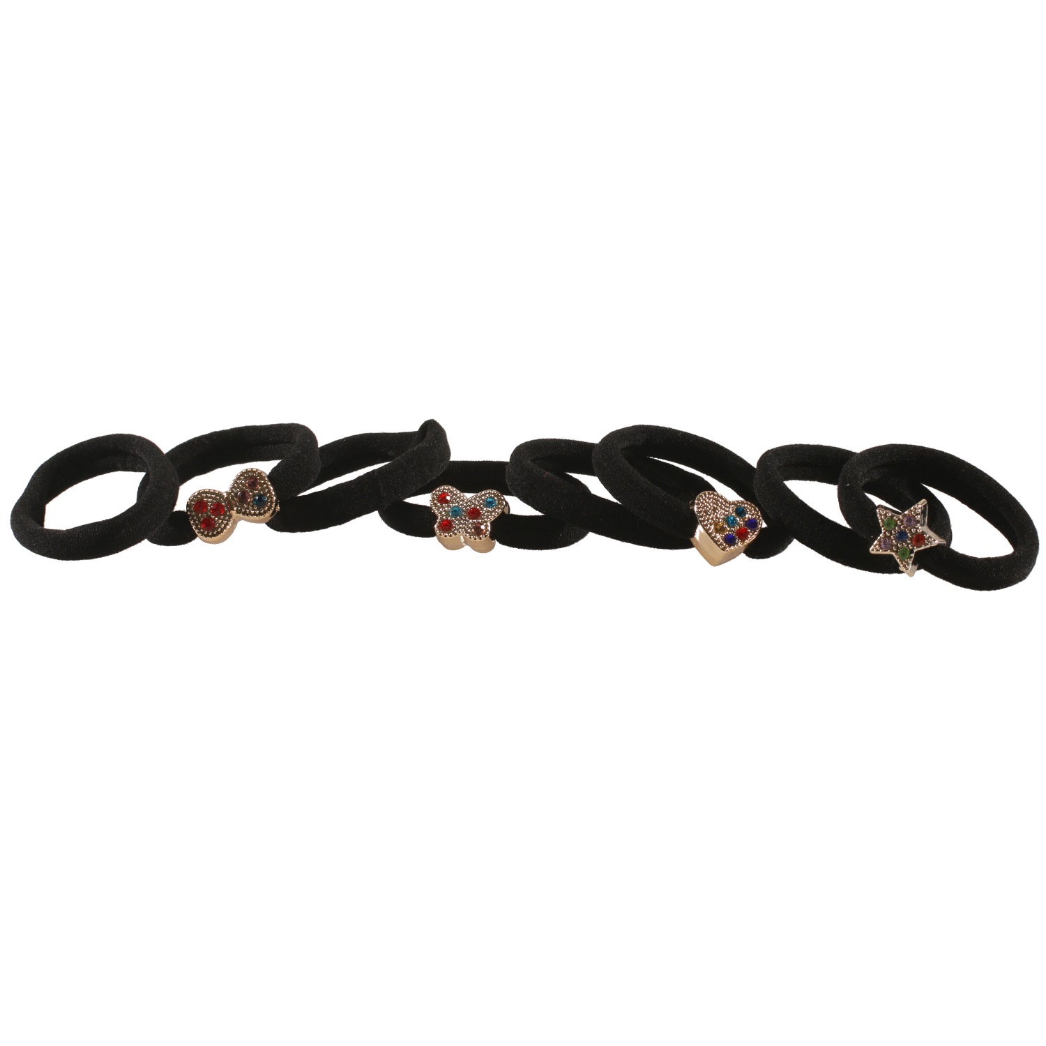 Lot de 8 élastiques cheveux en textile et plastique.