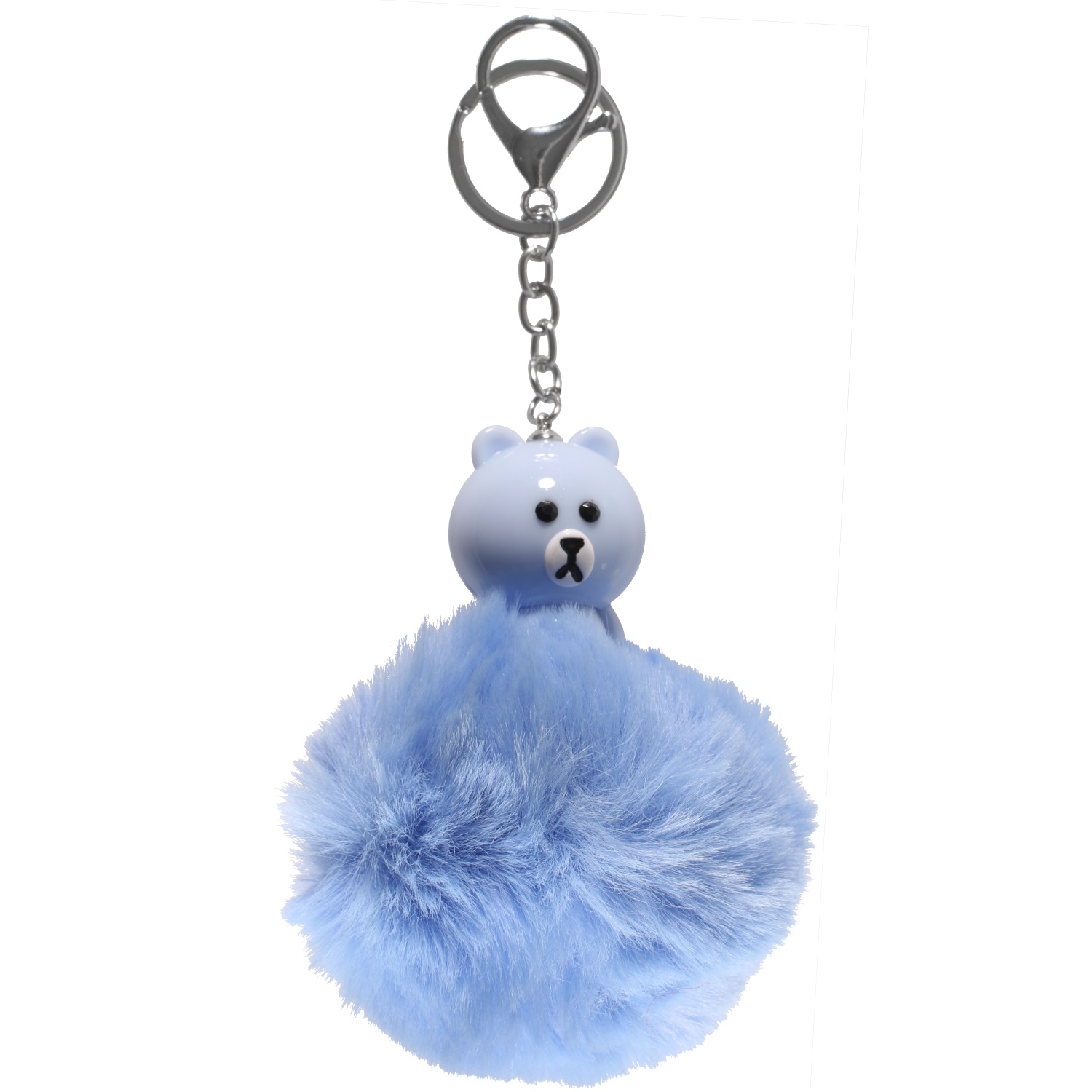 Porte-clés fantaisie avec nounours en plastique et pompon en textile.
