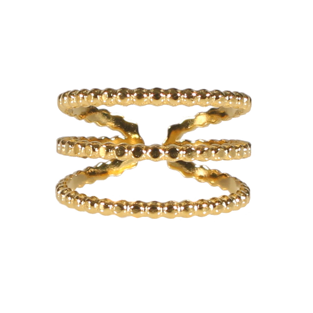 Description Bague triple rangs en acier doré. Taille ajustable. Largeur 12 mm Matière(s) Acier . L'acier utilisé dans la bijouterie existe sous plusieurs qualités. Nous utilisons principalement la qualité 316L, qualité qui est utilisée en chirurgie. Cet acier est donc inoxydable et reste très résistant. Couleur(s) dominante(s) Doré Public Adolescent , Adulte . Genre Femme , Fille . Saison Indémodable . Cliquez sur une matière, un thème, une couleur ou une collection pour voir tous les articles associés.