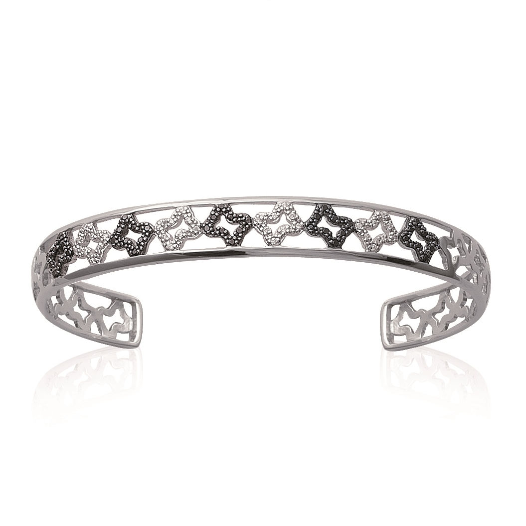 Bracelet jonc en argent 925/000 rhodié et oxyde de zirconium.