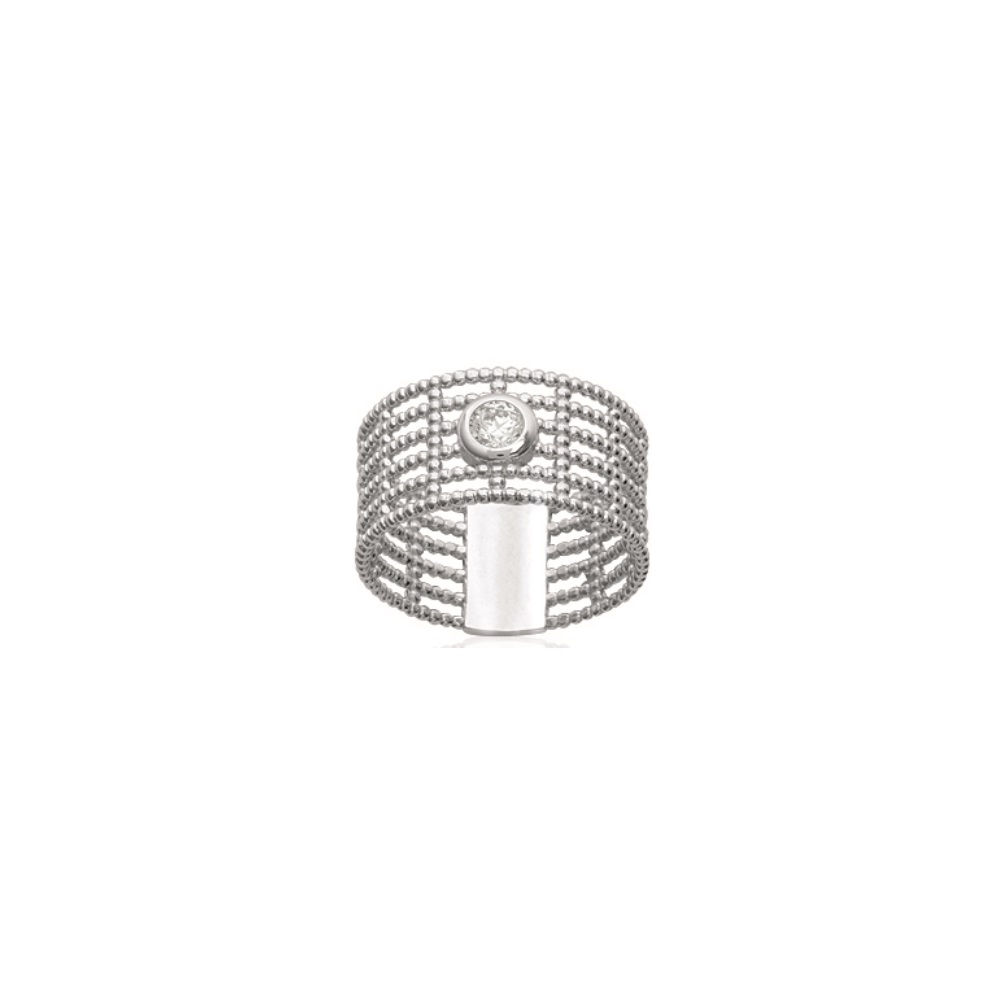 Description Bague en argent 925/000 rhodié et oxyde de zirconium. Largeur 11 mm Matière(s) Argent 925 rhodié , Zirconium . Afin de protéger votre bijou de l'oxydation naturelle de l'argent, il est recouvert d'une couche de rhodium (un métal rare et précieux) qui garantira sa brillance dans le temps et préviendra les risques d'allergie. Notez cependant, que le bijou est alors d'une teinte plus grisée et moins brillante que l'argent non rhodié. Poids d'argent 3,75 gramme(s) Couleur(s) dominante(s) Argenté , Multicolore , Transparent Public Adulte . Genre Femme . Saison Indémodable . Collection Perlée Cliquez sur une matière, un thème, une couleur ou une collection pour voir tous les articles associés.