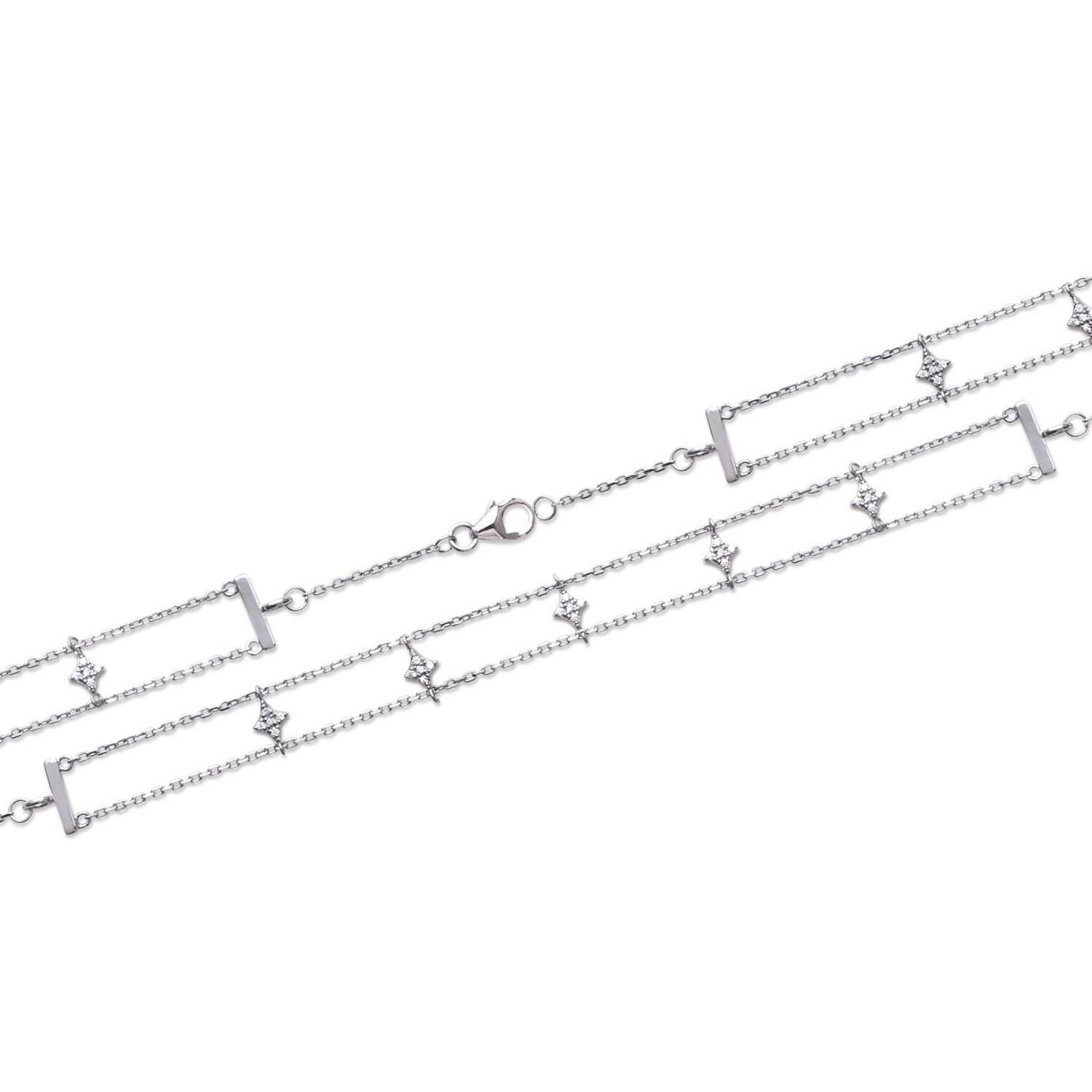 Description Bracelet deux rangs en argent 925/000 rhodié et losange en oxyde de zirconium. Longueur 18 cm [Guide des tailles] Largeur 9 mm Matière(s) Argent 925 rhodié , Zirconium . Afin de protéger votre bijou de l'oxydation naturelle de l'argent, il est recouvert d'une couche de rhodium (un métal rare et précieux) qui garantira sa brillance dans le temps et préviendra les risques d'allergie. Notez cependant, que le bijou est alors d'une teinte plus grisée et moins brillante que l'argent non rhodié. Poids d'argent 2,1 gramme(s) Fermoir Mousqueton Couleur(s) dominante(s) Argenté Public Adolescent , Adulte . Genre Femme , Fille . Saison Indémodable . Rayon en magasin TA Cliquez sur une matière, un thème, une couleur ou une collection pour voir tous les articles associés.