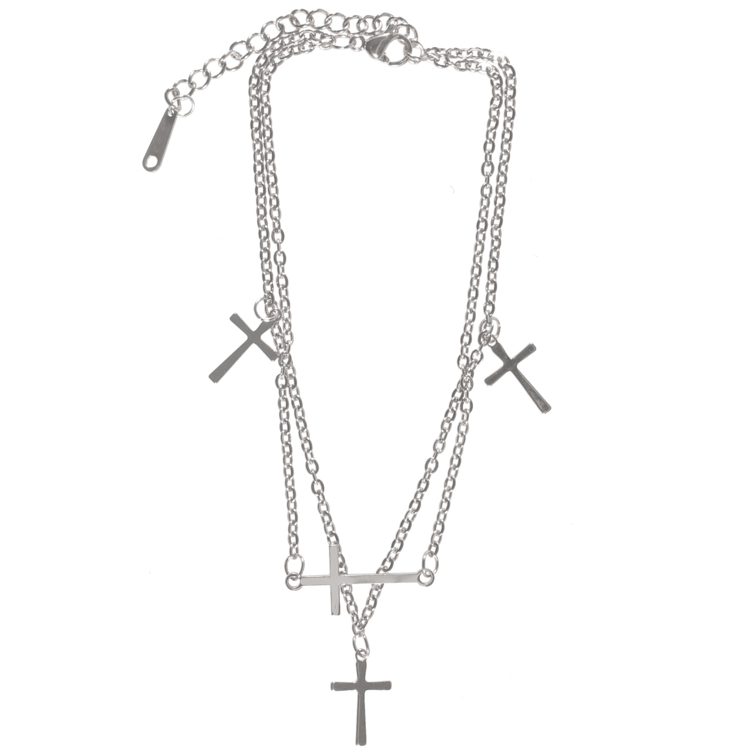 Description Chaîne/bracelet de cheville double rangs avec croix pendantes en acier argenté. Longueur 22+4 cm [Guide des tailles] Largeur 1.5 mm Matière(s) Acier . L'acier utilisé dans la bijouterie existe sous plusieurs qualités. Nous utilisons principalement la qualité 316L, qualité qui est utilisée en chirurgie. Cet acier est donc inoxydable et reste très résistant. Fermoir Mousqueton Couleur(s) dominante(s) Argenté Public Adolescent , Adulte . Genre Femme , Fille . Saison Indémodable . Thème(s) Religion . Cliquez sur une matière, un thème, une couleur ou une collection pour voir tous les articles associés.
