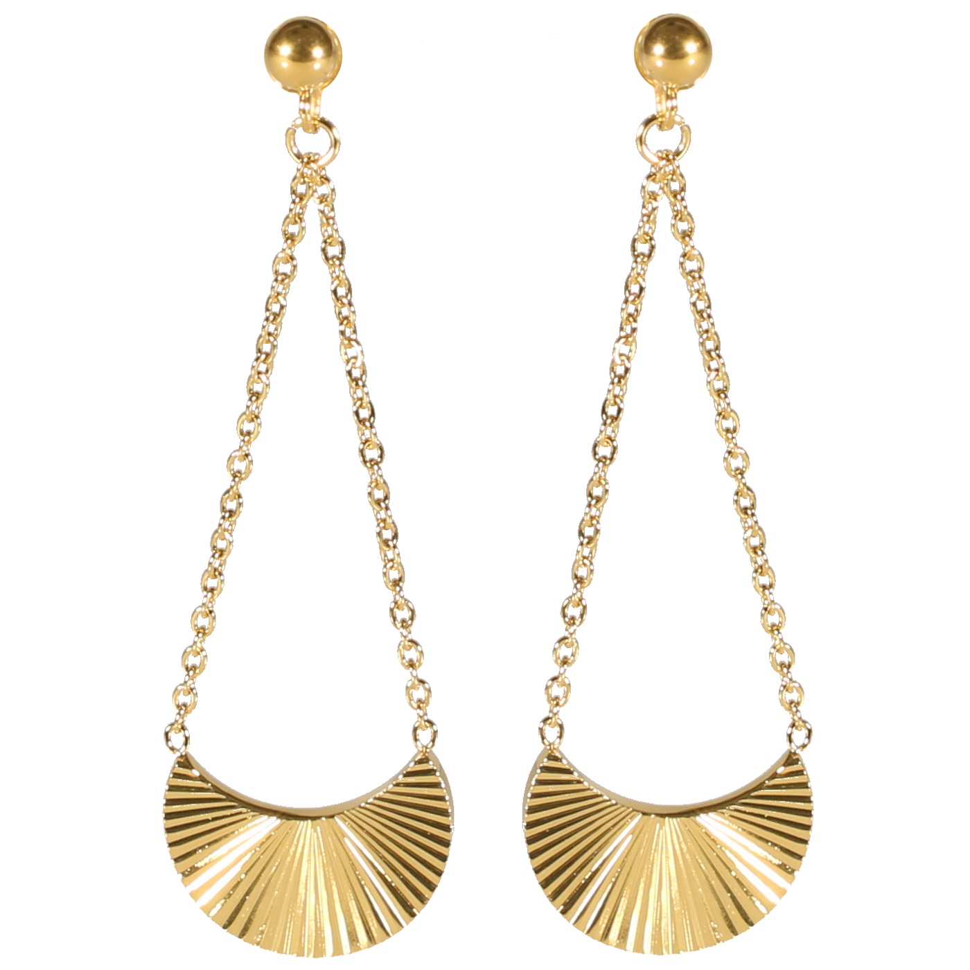 Description Boucles d'oreilles pendantes en acier doré. Largeur 16 mm Hauteur 49 mm Matière(s) Acier . L'acier utilisé dans la bijouterie existe sous plusieurs qualités. Nous utilisons principalement la qualité 316L, qualité qui est utilisée en chirurgie. Cet acier est donc inoxydable et reste très résistant. Fermoir Tiges poussettes Couleur(s) dominante(s) Doré Public Adolescent , Adulte . Genre Femme , Fille . Saison Indémodable . Collection Brillancy Cliquez sur une matière, un thème, une couleur ou une collection pour voir tous les articles associés.
