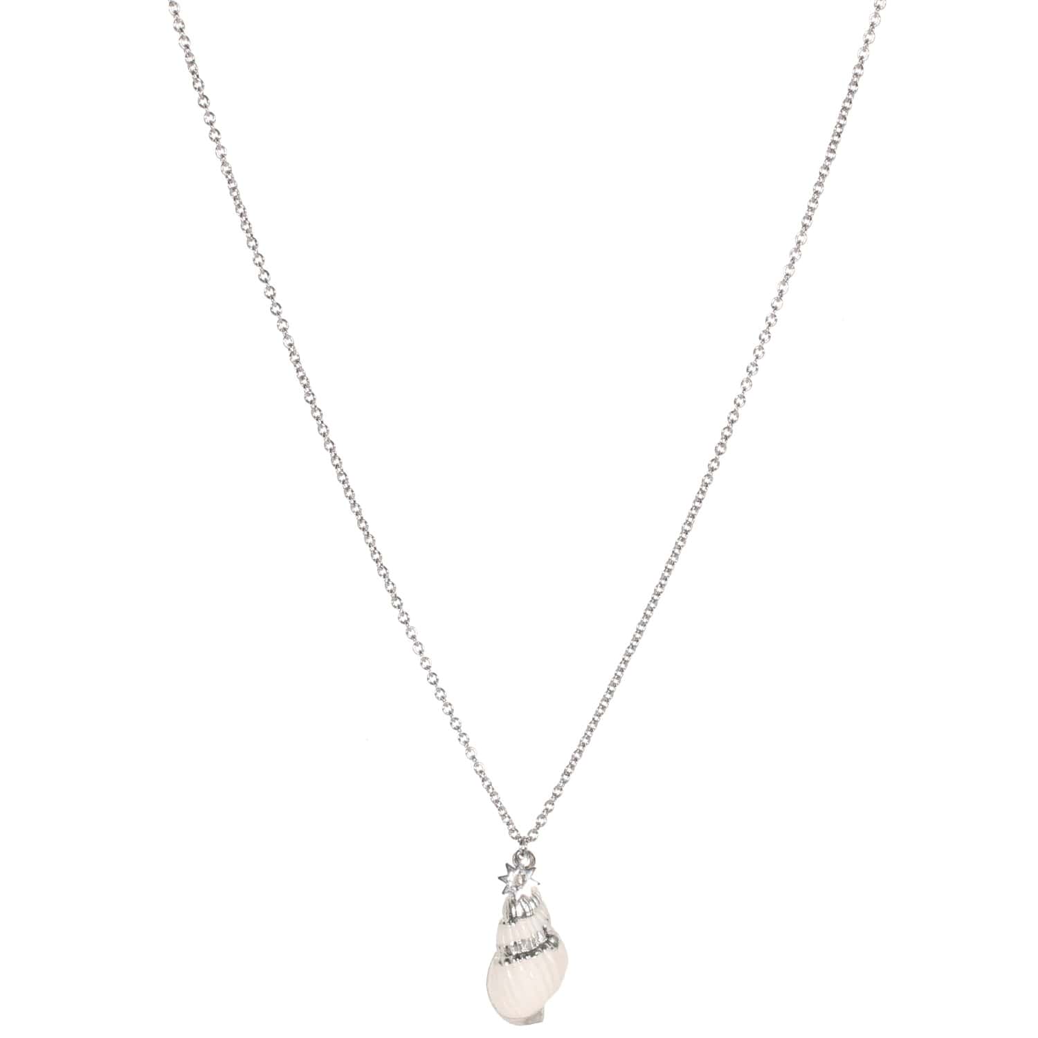 Collier avec étoile en acier argenté et véritable coquillage avec dorure argentée.