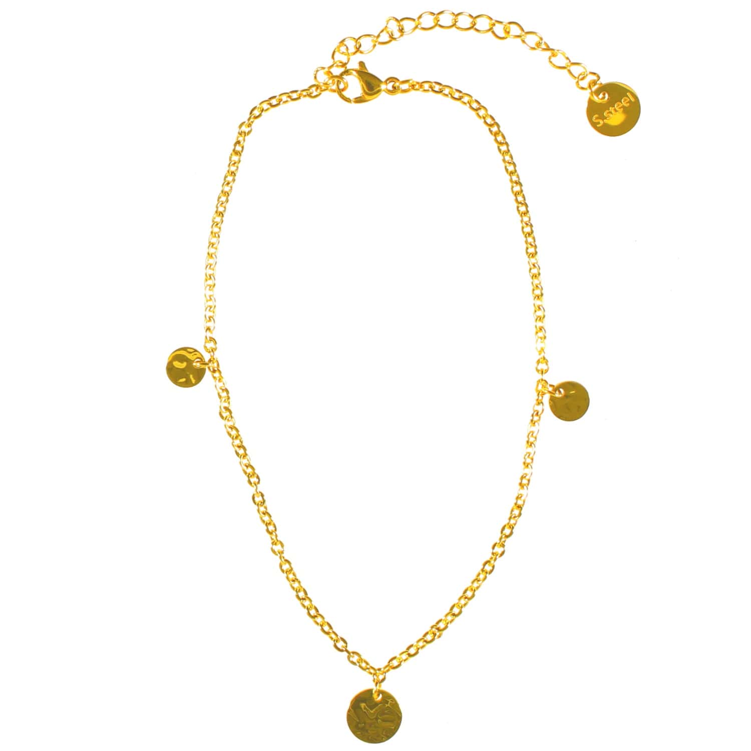 Description Chaîne de cheville avec pastilles martelées en acier doré. Longueur 21+5 cm [Guide des tailles] Largeur 6/8 mm Matière(s) Acier . L'acier utilisé dans la bijouterie existe sous plusieurs qualités. Nous utilisons principalement la qualité 316L, qualité qui est utilisée en chirurgie. Cet acier est donc inoxydable et reste très résistant. Fermoir Mousqueton Couleur(s) dominante(s) Doré Public Adolescent , Adulte . Genre Femme , Fille . Saison Eté , Indémodable . Collection Reflets Cliquez sur une matière, un thème, une couleur ou une collection pour voir tous les articles associés.