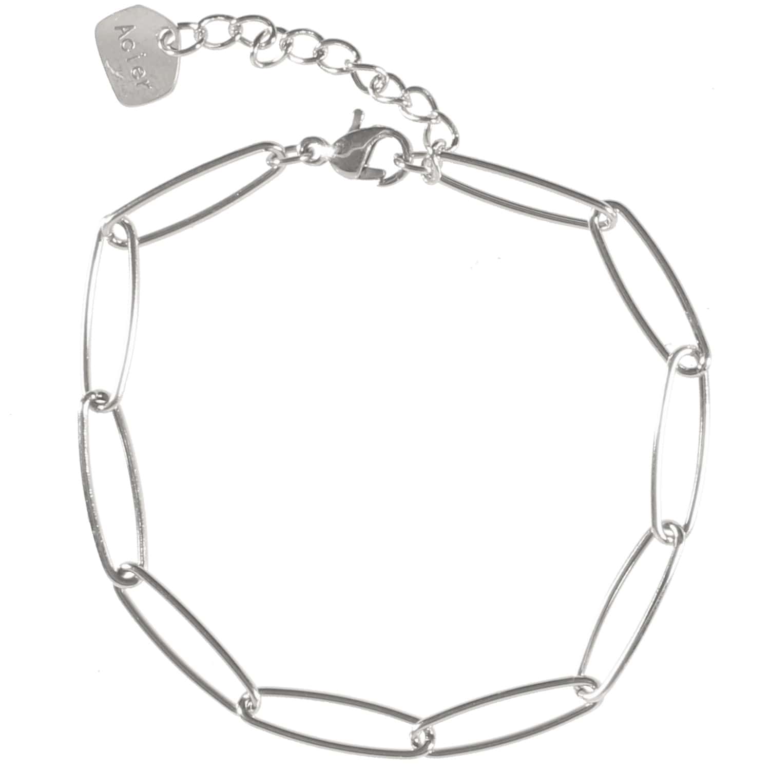 Description Bracelet chaîne en acier argenté. Fermoir mousqueton avec rallonge de 3 cm. Cliquez sur une matière, un thème, une couleur ou une collection pour voir tous les articles associés.