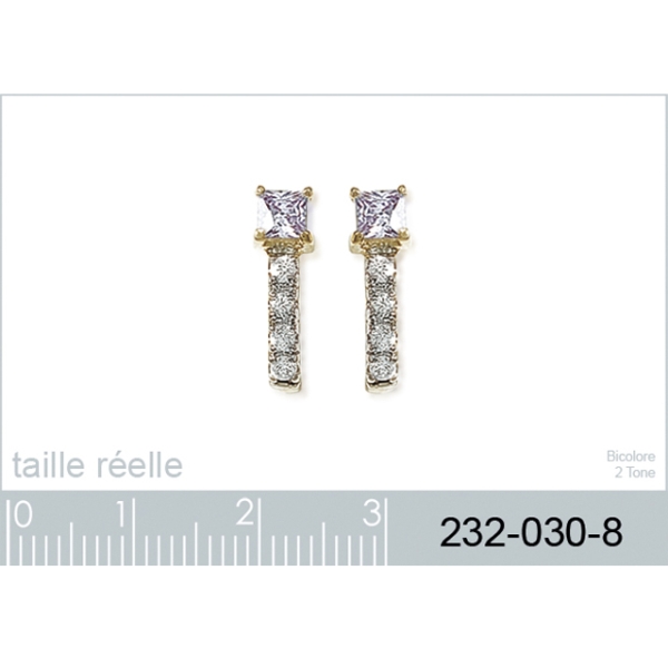 Boucles d'oreilles en plaqué-or et pierre synthétique violette. Carré  Adulte Femme Indémodable