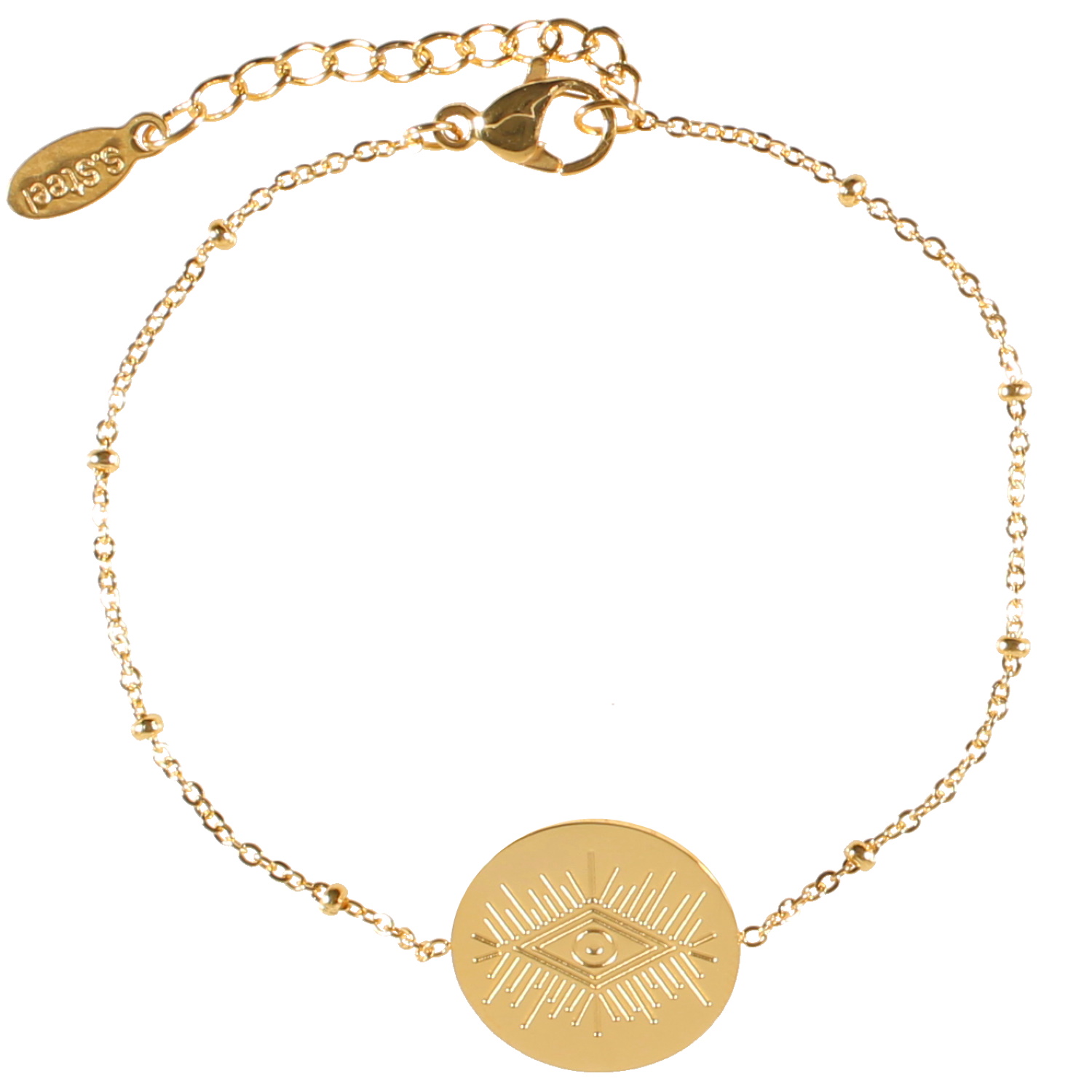 Description Bracelet composé d'une chaîne et d'une pastille avec motif gravé d'un œil en acier doré. Fermoir mousqueton avec 3 cm de rallonge. Longueur 16+3 cm [Guide des tailles] Largeur 16 mm Matière(s) Acier . L'acier utilisé dans la bijouterie existe sous plusieurs qualités. Nous utilisons principalement la qualité 316L, qualité qui est utilisée en chirurgie. Cet acier est donc inoxydable et reste très résistant. Fermoir Mousqueton Couleur(s) dominante(s) Doré Public Adolescent , Adulte . Genre Femme , Fille . Saison Indémodable . Thème(s) Symboles . Cliquez sur une matière, un thème, une couleur ou une collection pour voir tous les articles associés.
