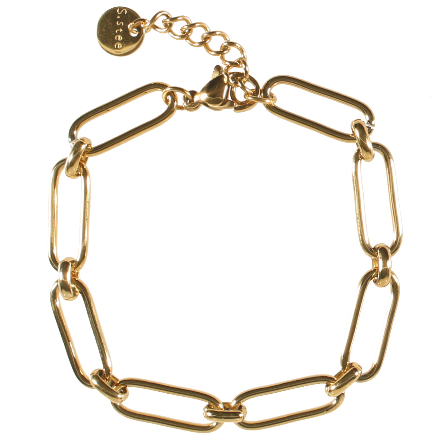Description Bracelet chaîne grosse maille en acier doré. Fermoir mousqueton avec 2 cm de rallonge. Cliquez sur une matière, un thème, une couleur ou une collection pour voir tous les articles associés.