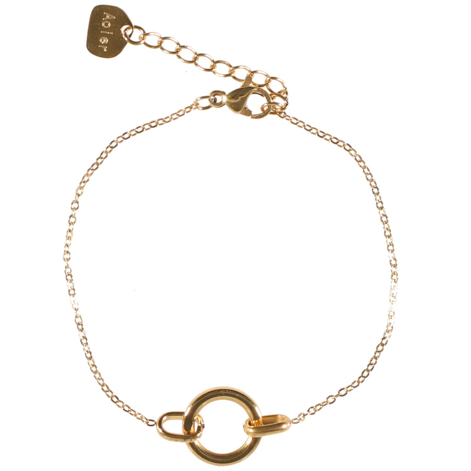 Description Bracelet composé d'une chaîne et d'un cercle en acier doré. Fermoir mousqueton avec 3 cm de rallonge. Longueur 15+3 cm [Guide des tailles] Largeur 12 mm Matière(s) Acier . L'acier utilisé dans la bijouterie existe sous plusieurs qualités. Nous utilisons principalement la qualité 316L, qualité qui est utilisée en chirurgie. Cet acier est donc inoxydable et reste très résistant. Fermoir Mousqueton Couleur(s) dominante(s) Doré Public Adolescent , Adulte . Genre Femme , Fille . Saison Indémodable . Cliquez sur une matière, un thème, une couleur ou une collection pour voir tous les articles associés.