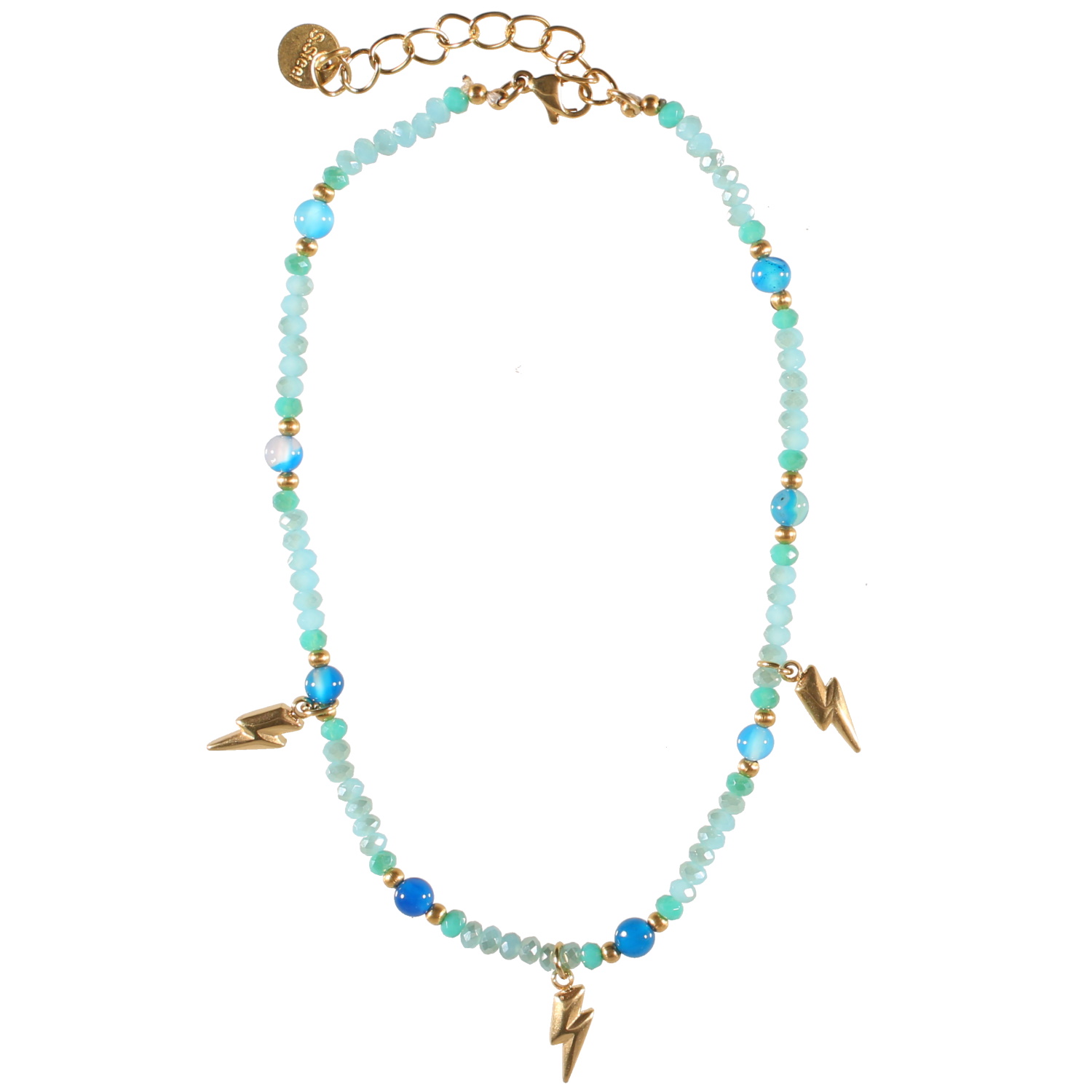 Description Bracelet chaîne de cheville composé de perles et pampilles éclairs en acier doré et de perles de couleur turquoise. Fermoir mousqueton en acier doré avec 4 cm de rallonge. Longueur 23+4 cm [Guide des tailles] Largeur 15 mm Matière(s) Acier , Rocaille . L'acier utilisé dans la bijouterie existe sous plusieurs qualités. Nous utilisons principalement la qualité 316L, qualité qui est utilisée en chirurgie. Cet acier est donc inoxydable et reste très résistant. Fermoir Mousqueton Couleur(s) dominante(s) Bleu , Doré Public Adolescent , Adulte . Genre Femme , Fille . Saison Indémodable . Thème(s) Nature . Cliquez sur une matière, un thème, une couleur ou une collection pour voir tous les articles associés.
