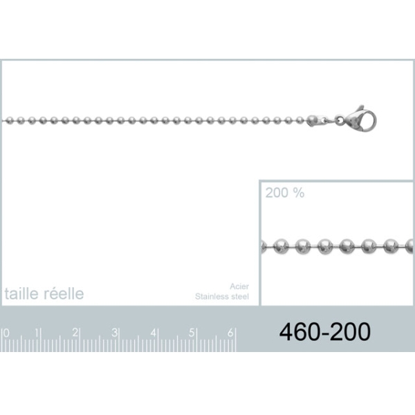 Description Chaîne en acier. Longueur 50 cm [Guide des tailles] Largeur 2 mm Maille Boule Matière(s) Acier . L'acier utilisé dans la bijouterie existe sous plusieurs qualités. Nous utilisons principalement la qualité 316L, qualité qui est utilisée en chirurgie. Cet acier est donc inoxydable et reste très résistant. Fermoir Mousqueton À noter Longueur 50 cm Couleur(s) dominante(s) Argenté Public Adulte . Genre Femme , Homme , Mixte . Saison Indémodable . Cliquez sur une matière, un thème, une couleur ou une collection pour voir tous les articles associés.