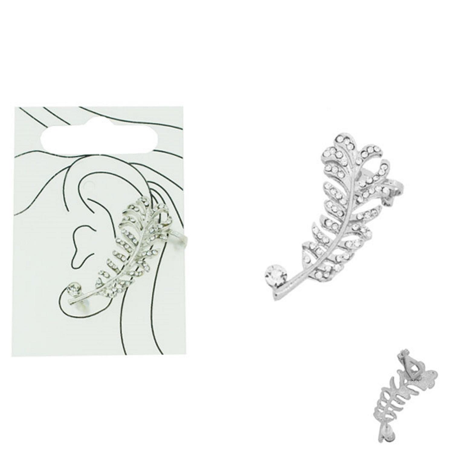 Boucle/Bague pour oreille gauche en métal argenté et cristaux synthétiques.