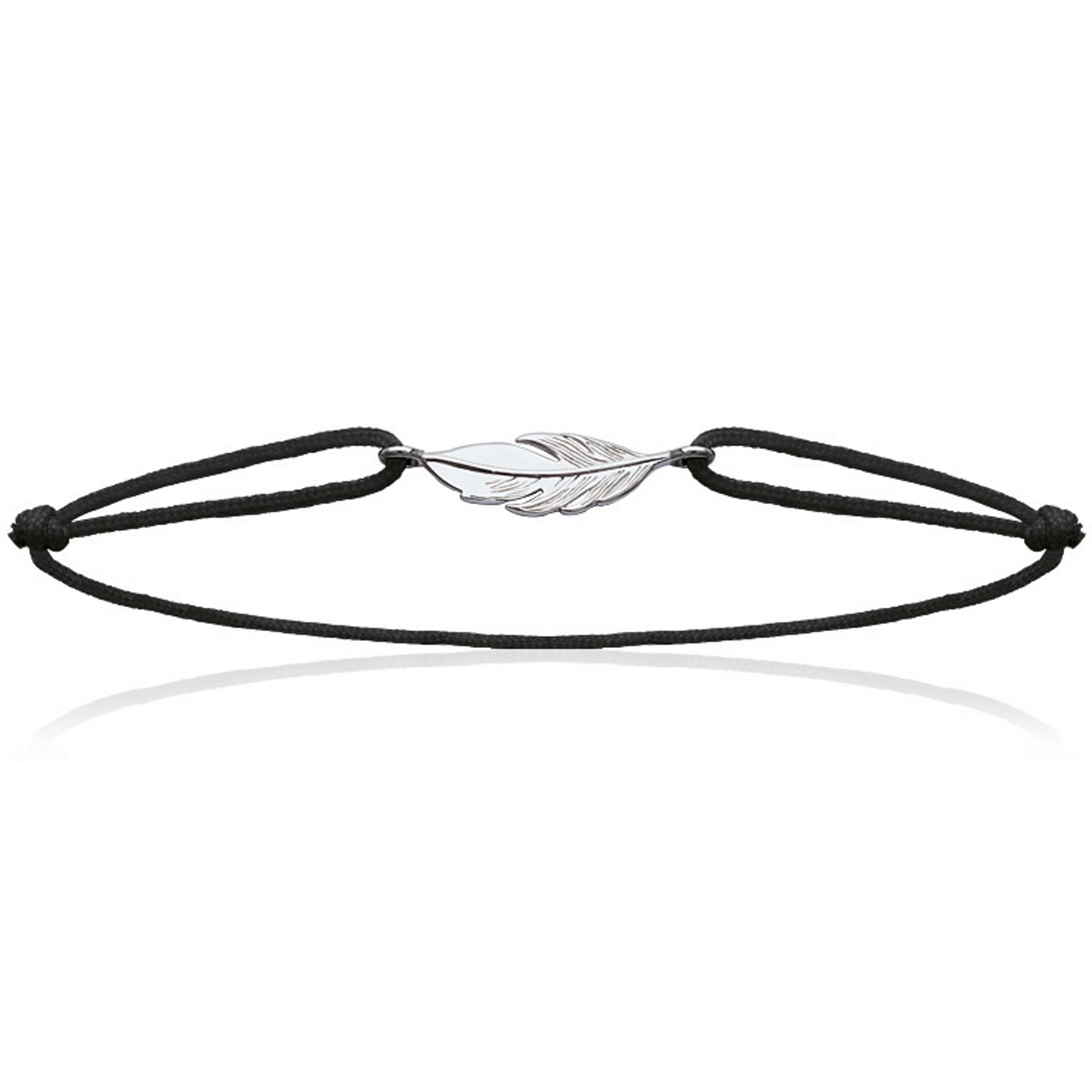 Bracelet Plume en argent 925/000 rhodié et coton. Cordon Plume  Adolescent Adulte Femme Fille Indémodable