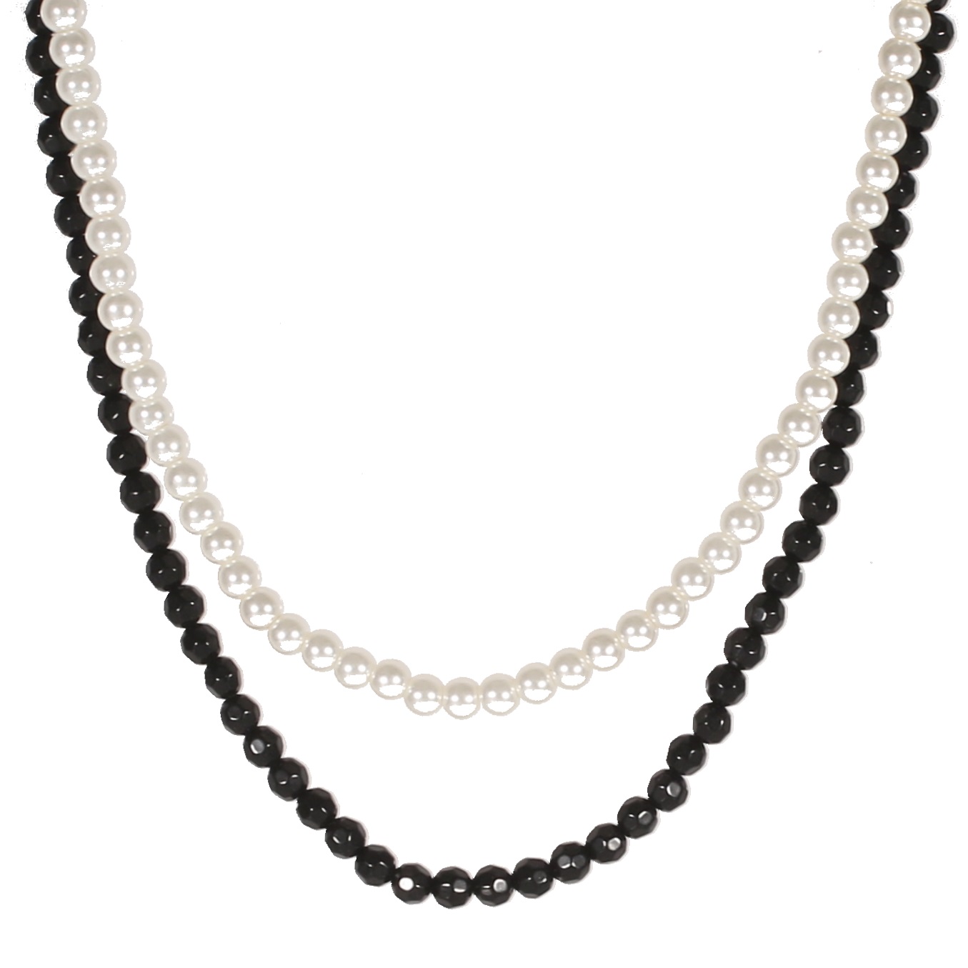 Description Collier fantaisie multi rangs en métal argenté, cristaux noirs et perles synthétiques. 2 rangs. Cliquez sur une matière, un thème, une couleur ou une collection pour voir tous les articles associés.