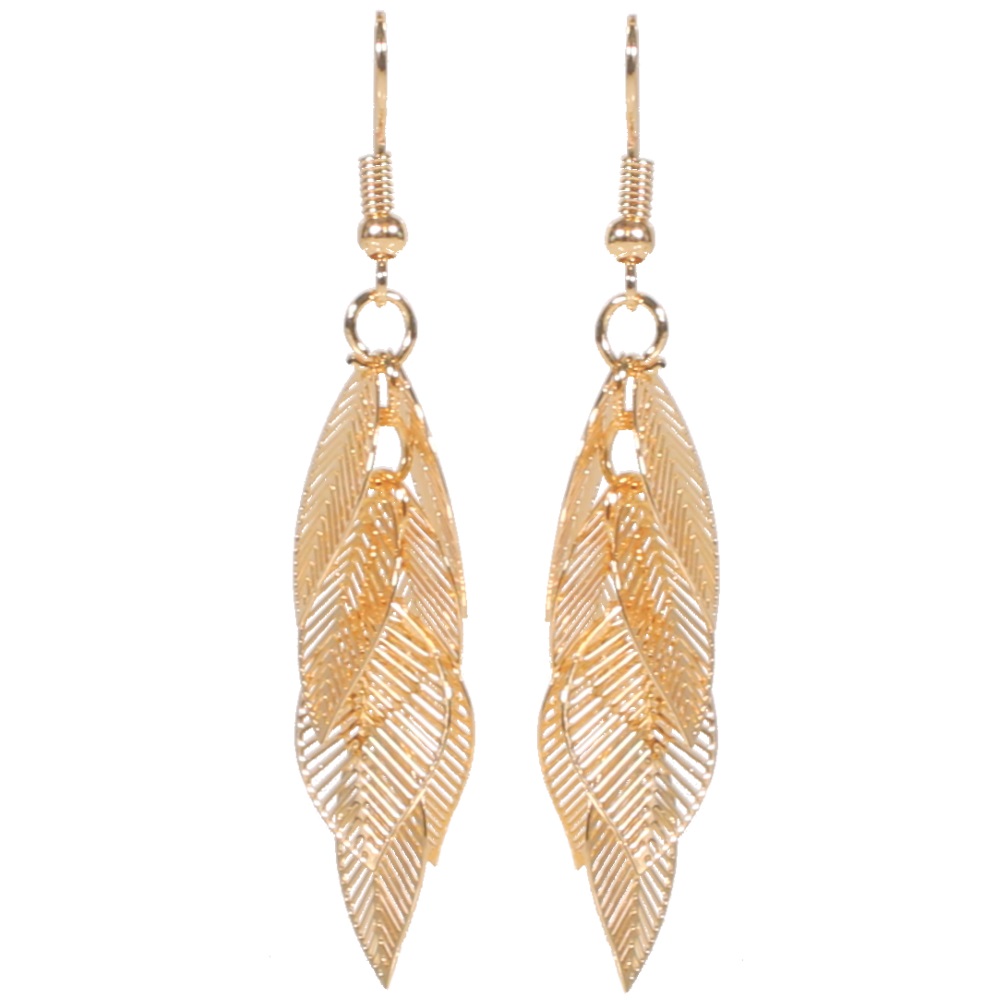 Description Boucles d'oreilles pendantes feuilles en métal doré. Cliquez sur une matière, un thème, une couleur ou une collection pour voir tous les articles associés.