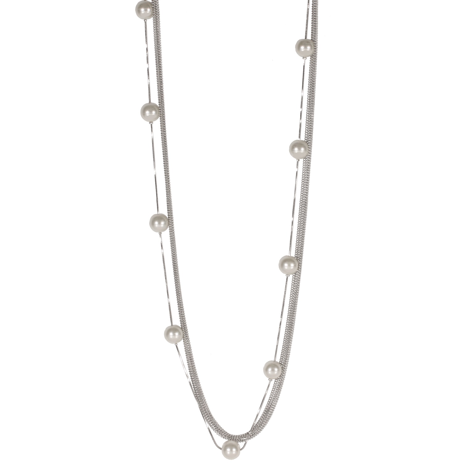 Description Collier sautoir multi rangs en métal argenté et perles synthétiques. 7 rangs. Cliquez sur une matière, un thème, une couleur ou une collection pour voir tous les articles associés.