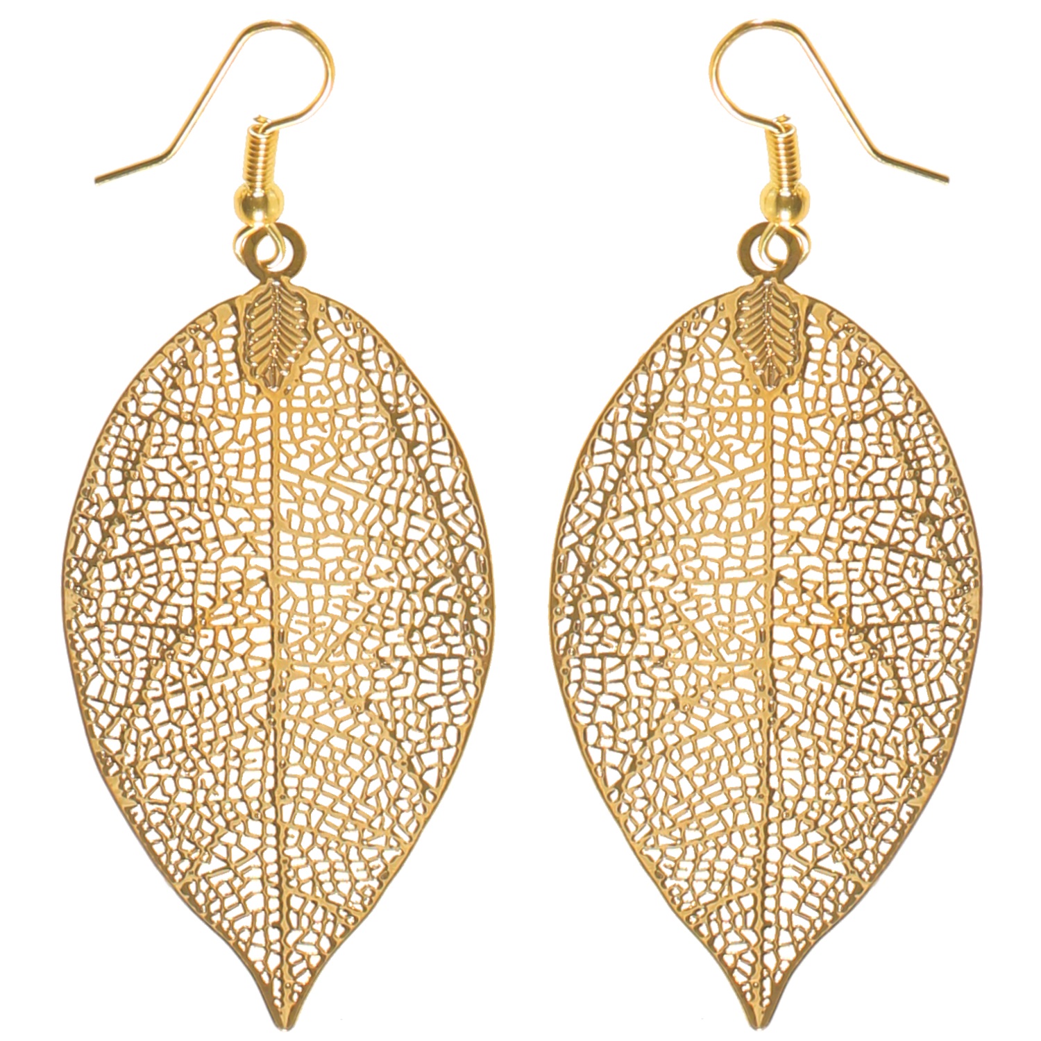 Description Boucles d'oreilles pendantes feuille en métal doré. Cliquez sur une matière, un thème, une couleur ou une collection pour voir tous les articles associés.