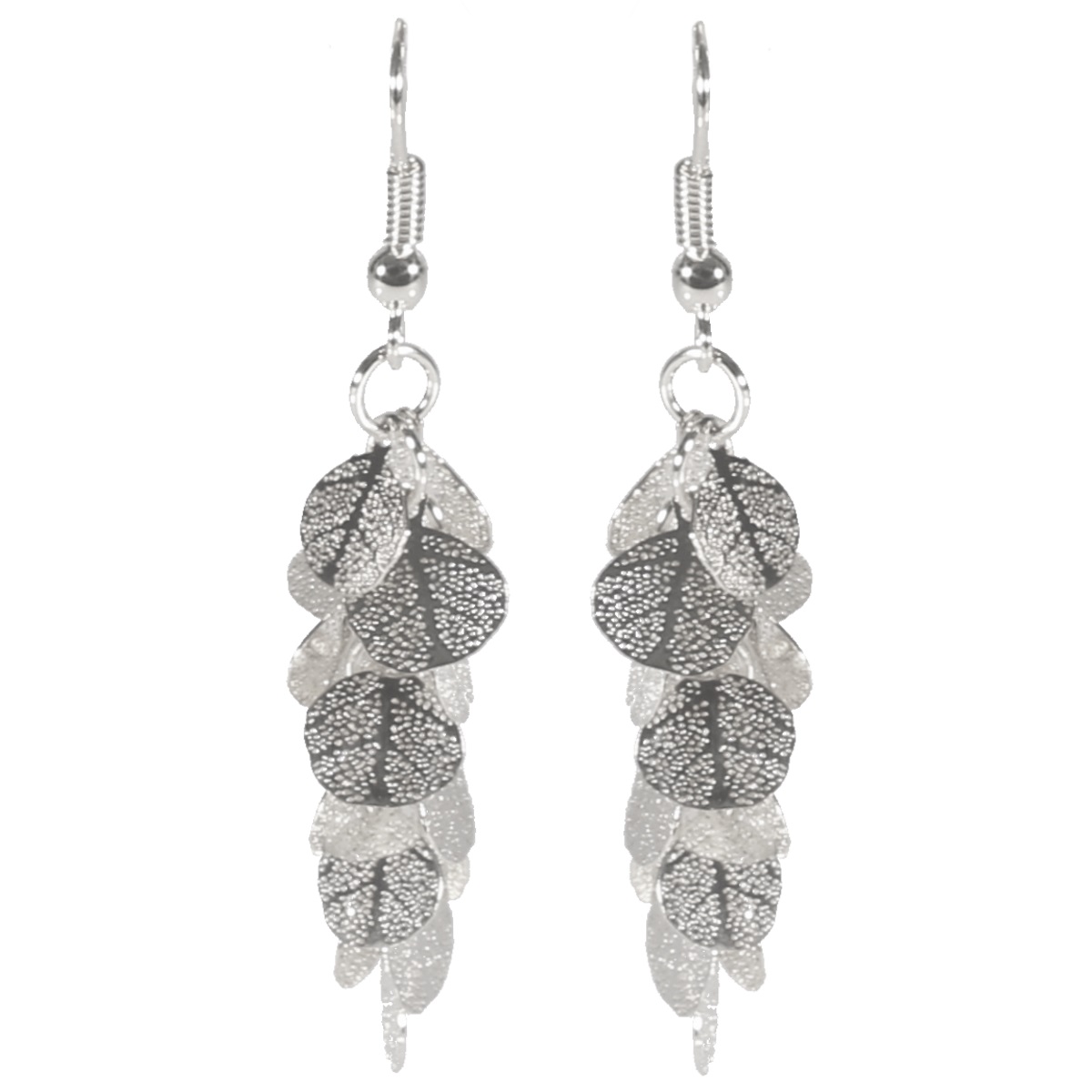 Description Boucles d'oreilles pendantes fantaisie feuilles en métal argenté. Cliquez sur une matière, un thème, une couleur ou une collection pour voir tous les articles associés.