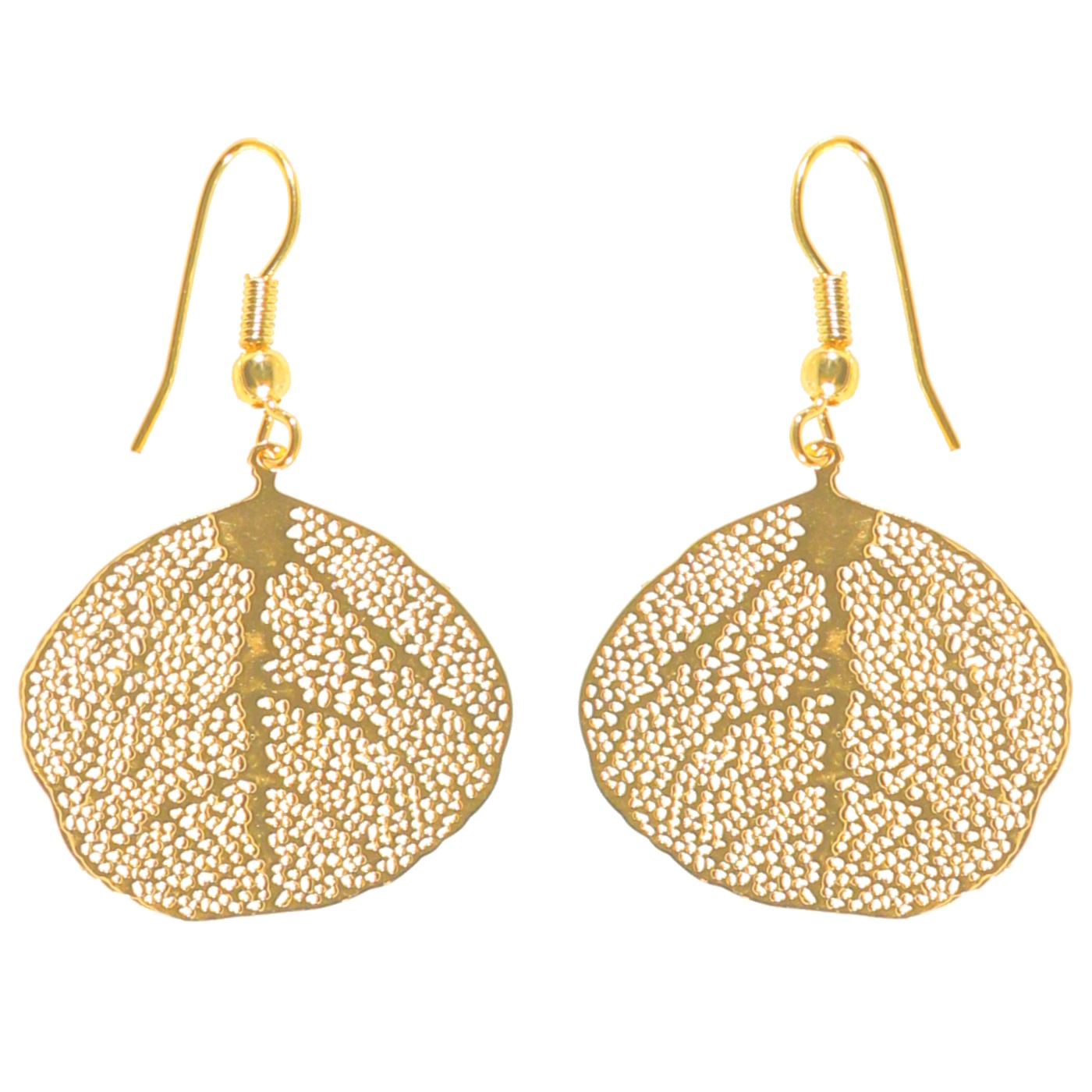 Description Boucles d'oreilles pendantes fantaisie feuilles en métal doré. Cliquez sur une matière, un thème, une couleur ou une collection pour voir tous les articles associés.