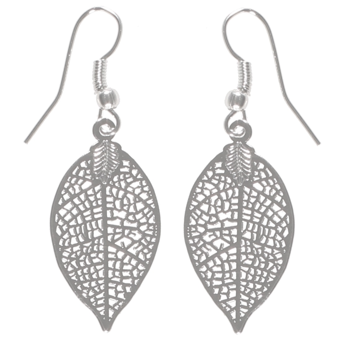 Description Boucles d'oreilles pendantes fantaisie feuilles en métal argenté. Cliquez sur une matière, un thème, une couleur ou une collection pour voir tous les articles associés.