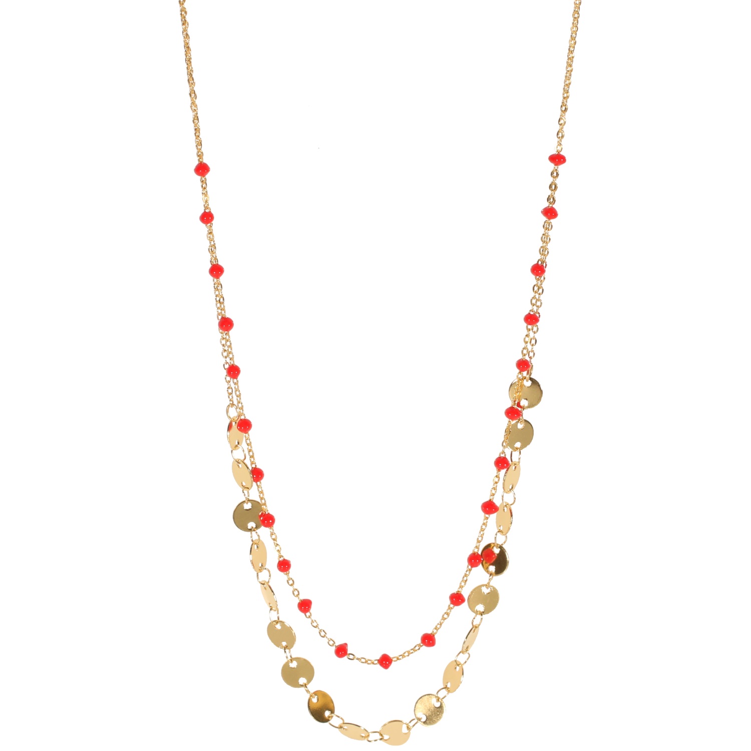 Description Collier multi rangs en acier doré et perles de couleur. 2 rangs. Longueur 41+5 cm [Guide des tailles] Largeur 6 mm Matière(s) Acier , Email . L'acier utilisé dans la bijouterie existe sous plusieurs qualités. Nous utilisons principalement la qualité 316L, qualité qui est utilisée en chirurgie. Cet acier est donc inoxydable et reste très résistant. Fermoir Mousqueton Couleur(s) dominante(s) Doré , Rouge Public Adolescent , Adulte . Genre Femme , Fille . Saison Indémodable . Cliquez sur une matière, un thème, une couleur ou une collection pour voir tous les articles associés.