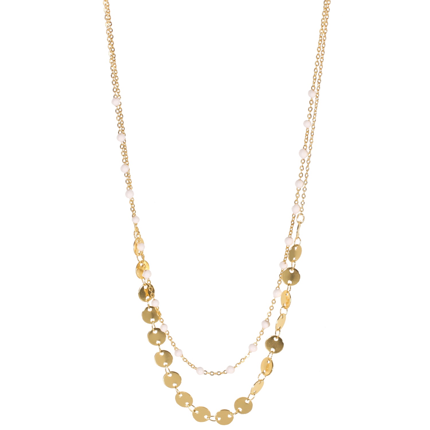 Description Collier multi rangs en acier doré et perles de couleur. 2 rangs. Longueur 41+5 cm [Guide des tailles] Largeur 6 mm Matière(s) Acier , Email . L'acier utilisé dans la bijouterie existe sous plusieurs qualités. Nous utilisons principalement la qualité 316L, qualité qui est utilisée en chirurgie. Cet acier est donc inoxydable et reste très résistant. Fermoir Mousqueton Couleur(s) dominante(s) Blanc , Doré Public Adolescent , Adulte . Genre Femme , Fille . Saison Indémodable . Cliquez sur une matière, un thème, une couleur ou une collection pour voir tous les articles associés.