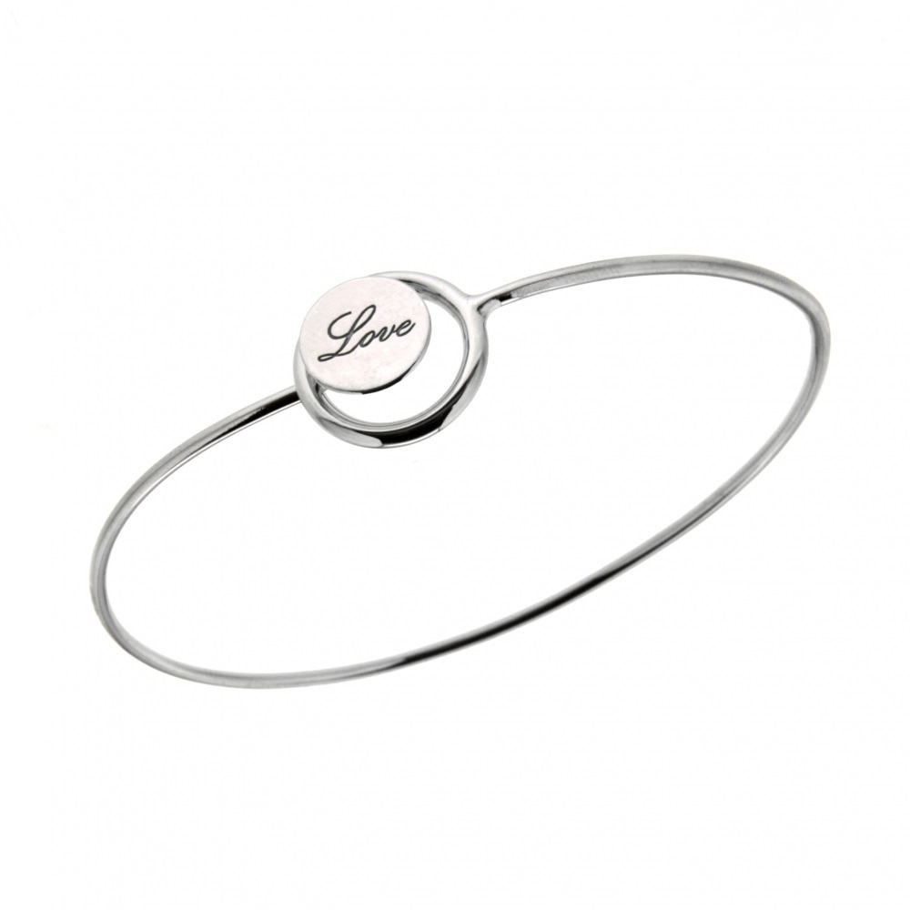 Bracelet jonc avec pastille et l'inscription Love en argent 925/000 rhodié.