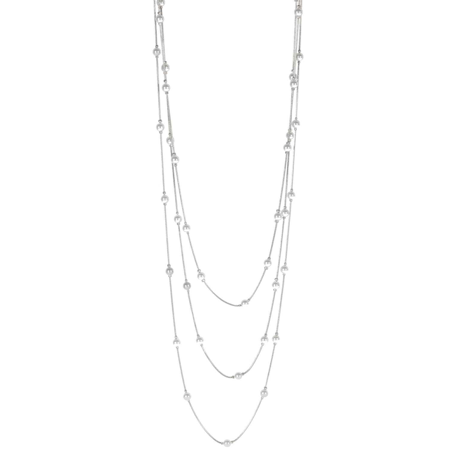 Description Collier sautoir fantaisie triple rangs en métal argenté et perles synthétiques. Cliquez sur une matière, un thème, une couleur ou une collection pour voir tous les articles associés.