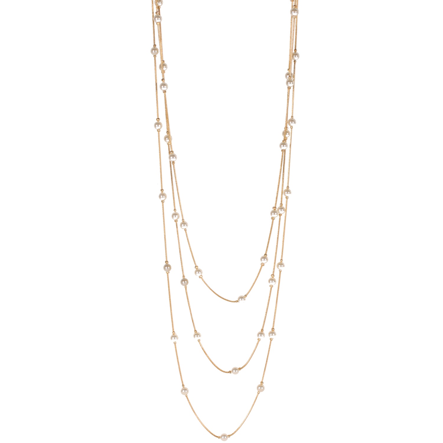 Description Collier sautoir fantaisie triple rangs en métal doré et perles synthétiques. Cliquez sur une matière, un thème, une couleur ou une collection pour voir tous les articles associés.