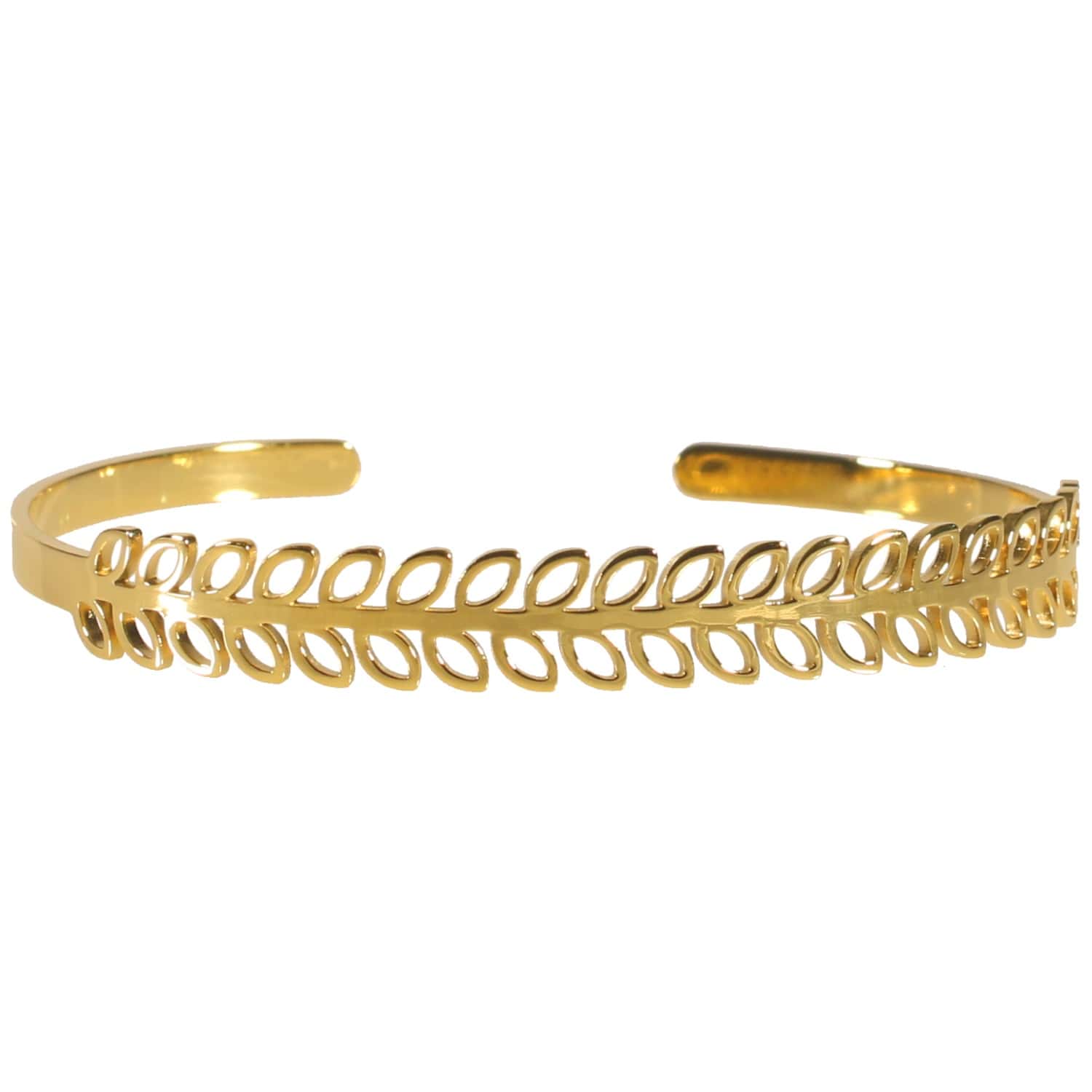 Description Bracelet jonc branche de laurier en acier doré. Cliquez sur une matière, un thème, une couleur ou une collection pour voir tous les articles associés.