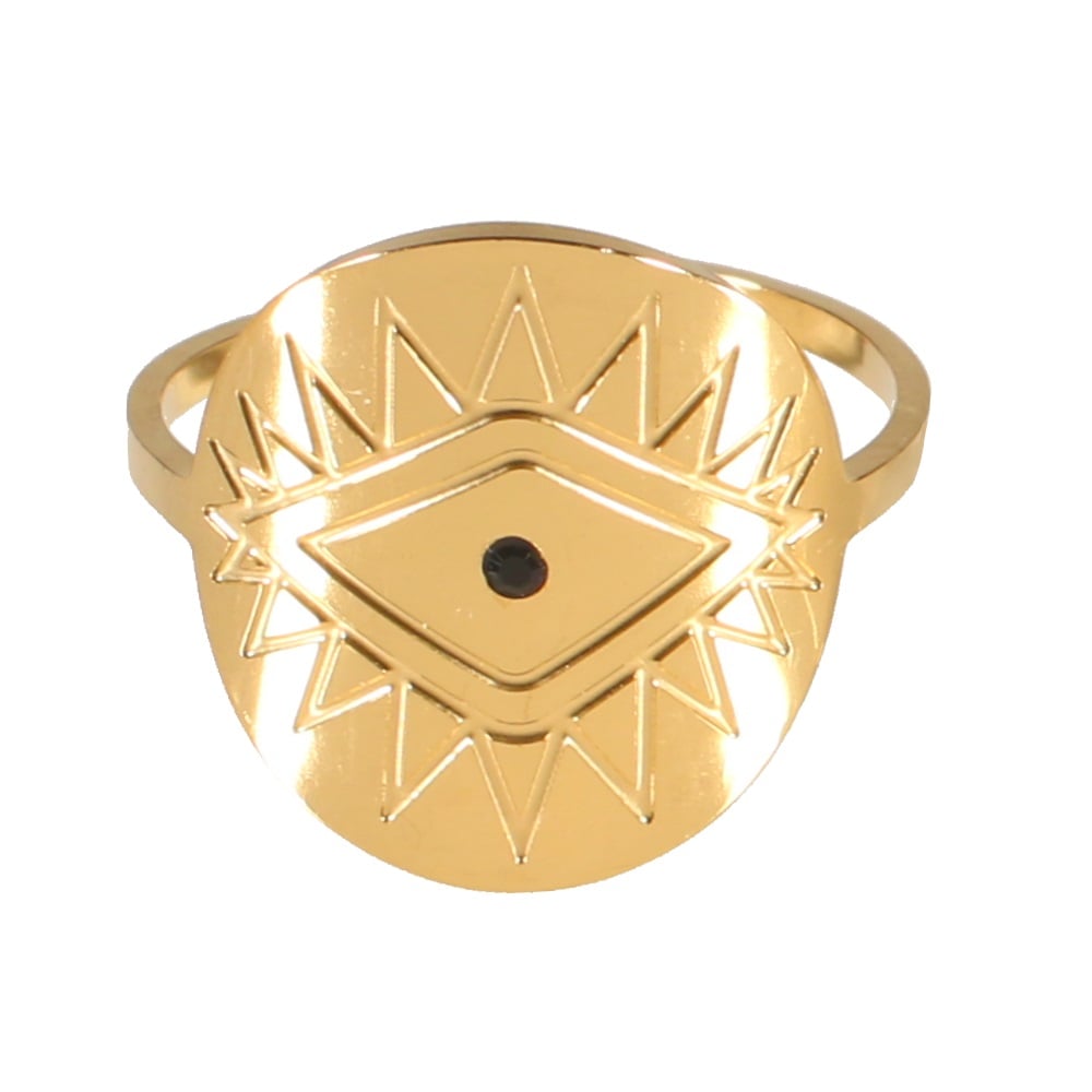 Description Bague avec motif œil de Turquie en acier doré et 1 cristal de couleur noire. Taille ajustable. Largeur 17 mm Matière(s) Acier , Verre . L'acier utilisé dans la bijouterie existe sous plusieurs qualités. Nous utilisons principalement la qualité 316L, qualité qui est utilisée en chirurgie. Cet acier est donc inoxydable et reste très résistant. Couleur(s) dominante(s) Doré , Noir Public Adolescent , Adulte . Genre Femme , Fille . Saison Indémodable . Thème(s) Symboles . Collection AntiKa Cliquez sur une matière, un thème, une couleur ou une collection pour voir tous les articles associés.