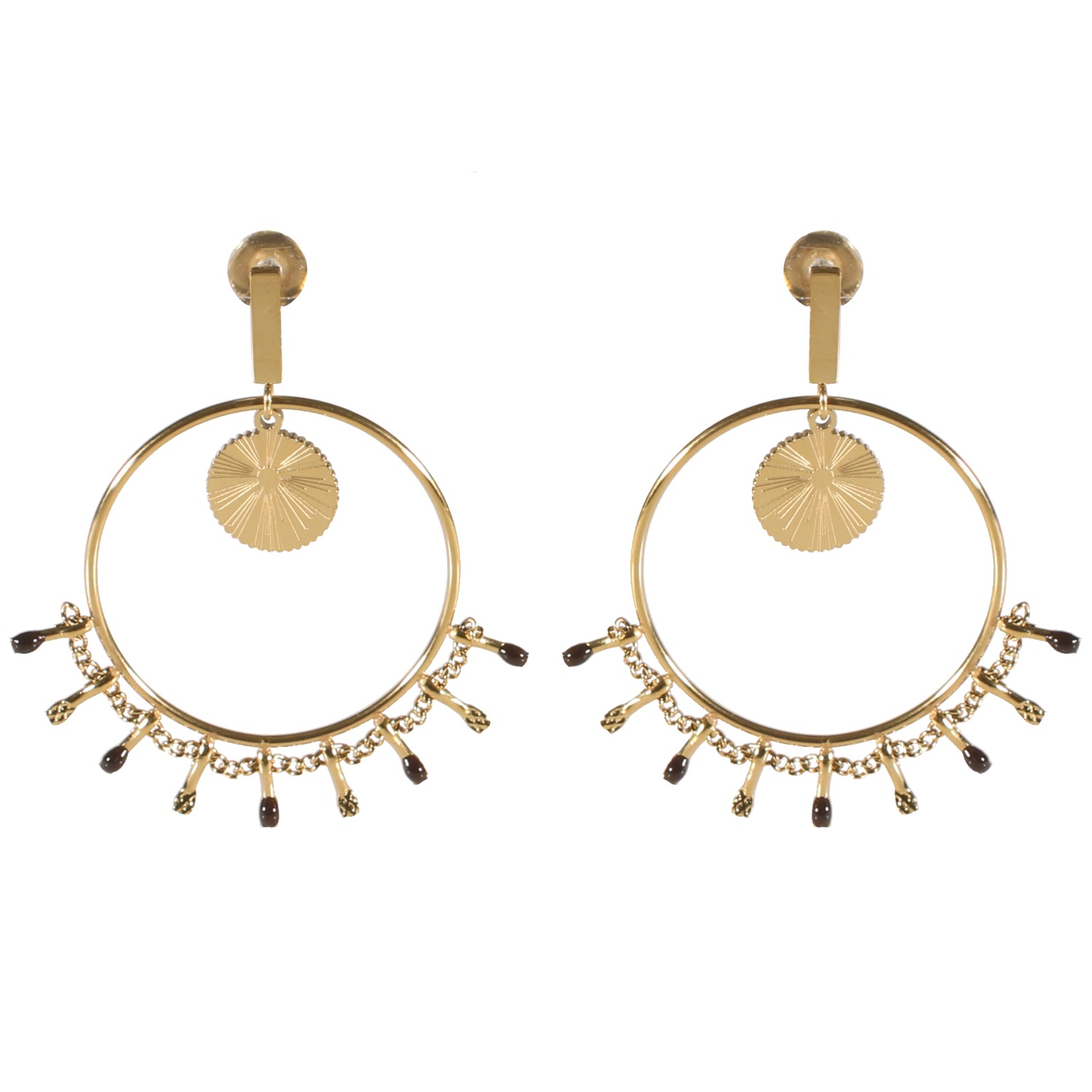 Description Boucles d'oreilles pendantes avec médaillons ronds au motif rayons de soleil dans un cercle avec pendants en acier doré et émail. Largeur 38 mm Hauteur 43 mm Matière(s) Acier , Email . L'acier utilisé dans la bijouterie existe sous plusieurs qualités. Nous utilisons principalement la qualité 316L, qualité qui est utilisée en chirurgie. Cet acier est donc inoxydable et reste très résistant. Fermoir Tiges poussettes Couleur(s) dominante(s) Doré , Noir Public Adolescent , Adulte . Genre Femme , Fille . Saison Indémodable . Cliquez sur une matière, un thème, une couleur ou une collection pour voir tous les articles associés.