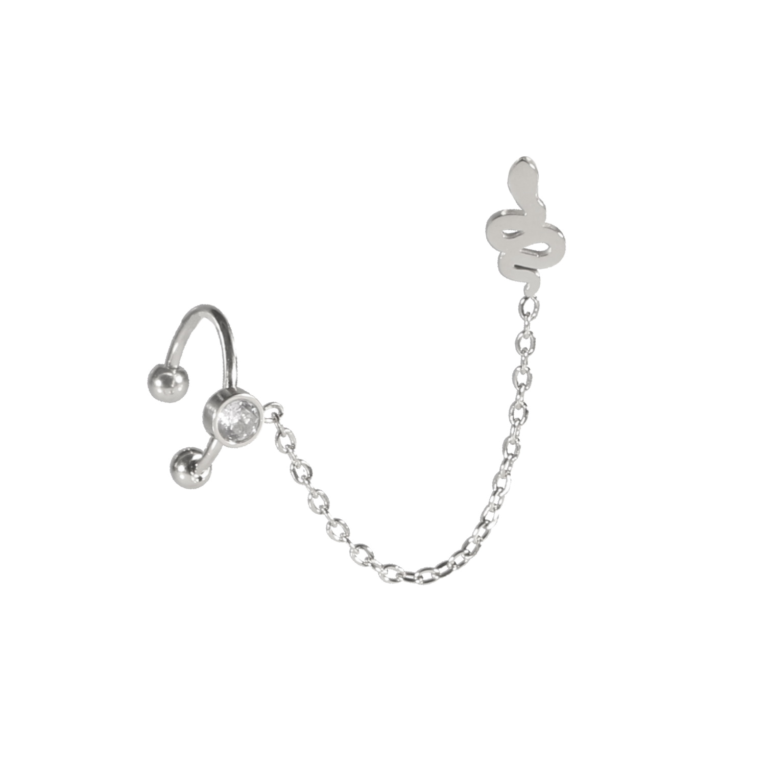 Description Boucle d'oreille en forme de serpent en acier argenté reliée par une chaînette à une bague d'oreille surmontée d'un cristal serti clos. Vendu à l'unité. Longueur 40 mm [Guide des tailles] Largeur 6 mm Hauteur 10 mm Matière(s) Acier , Verre . L'acier utilisé dans la bijouterie existe sous plusieurs qualités. Nous utilisons principalement la qualité 316L, qualité qui est utilisée en chirurgie. Cet acier est donc inoxydable et reste très résistant. Fermoir Tiges poussettes Couleur(s) dominante(s) Argenté Public Adolescent , Adulte . Genre Femme , Fille . Saison Indémodable . Thème(s) Animaux . Cliquez sur une matière, un thème, une couleur ou une collection pour voir tous les articles associés.