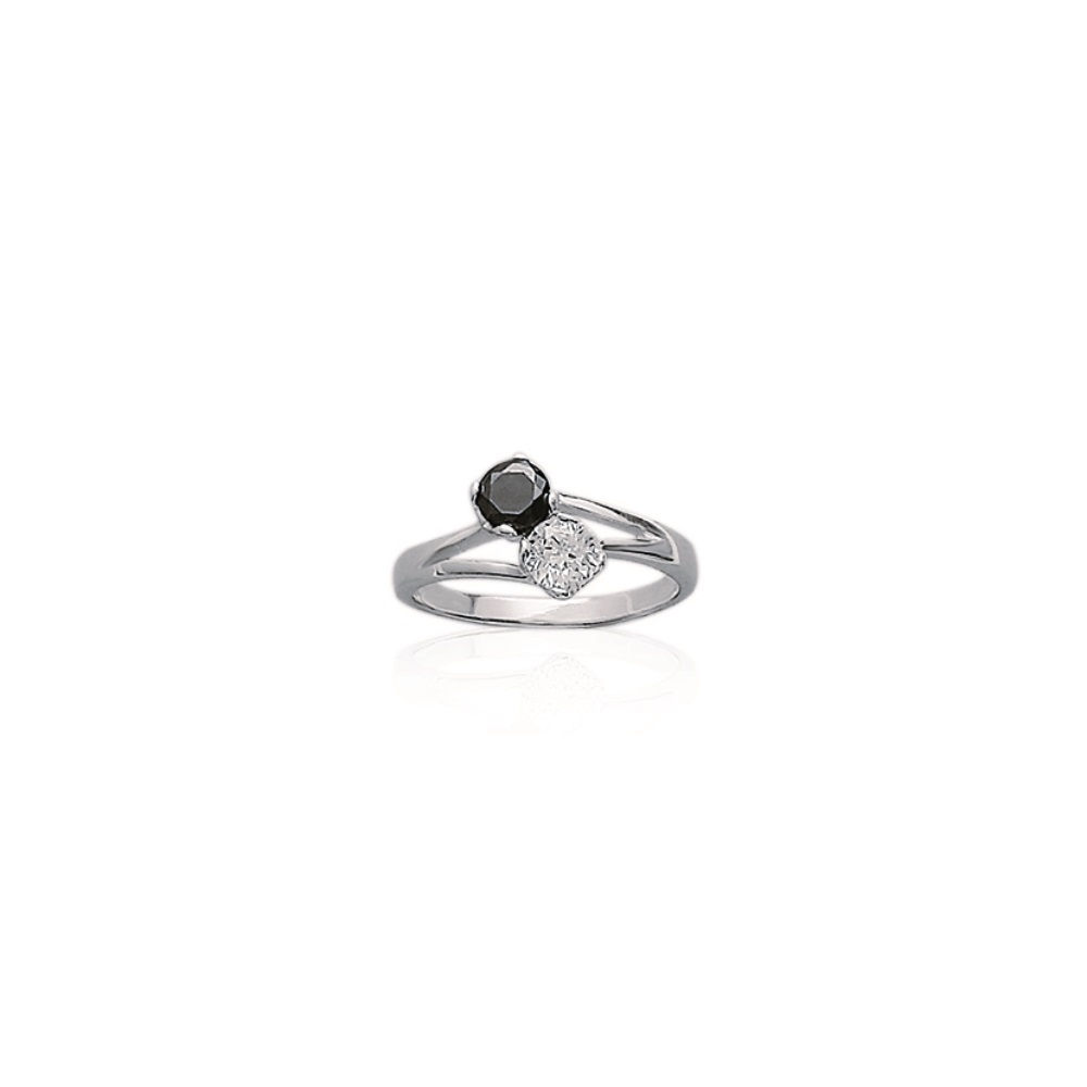 Bague en argent 925/000 rhodié, oxyde de zirconium et pierre synthétique.