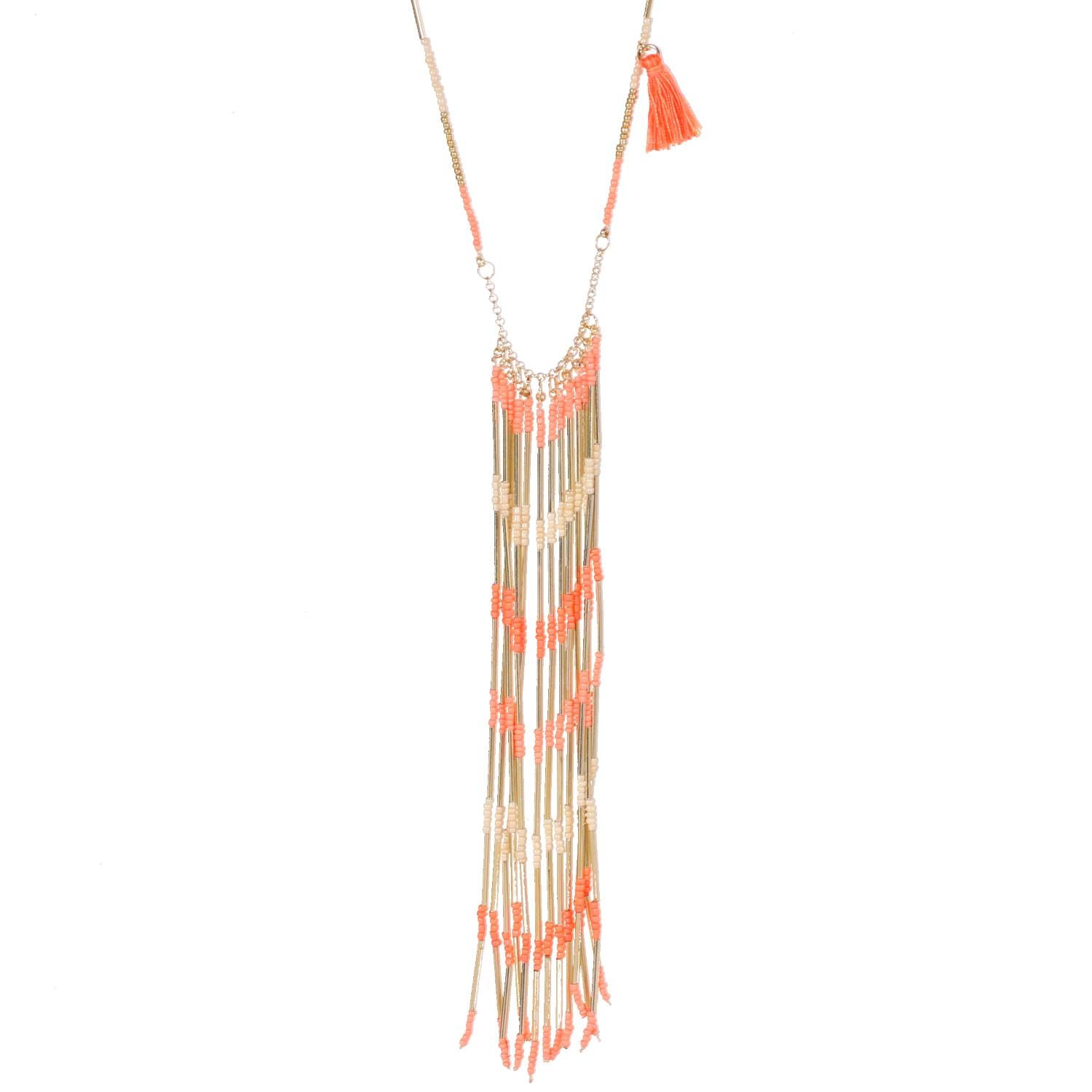 Collier fantaisie en métal doré, cristaux synthétiques et textile.