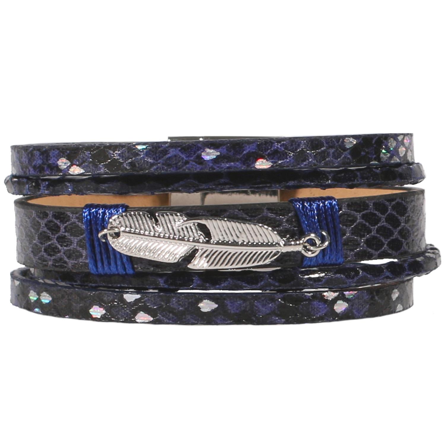 Bracelet fantaisie en métal argenté, suédine, polyuréthane et textile.