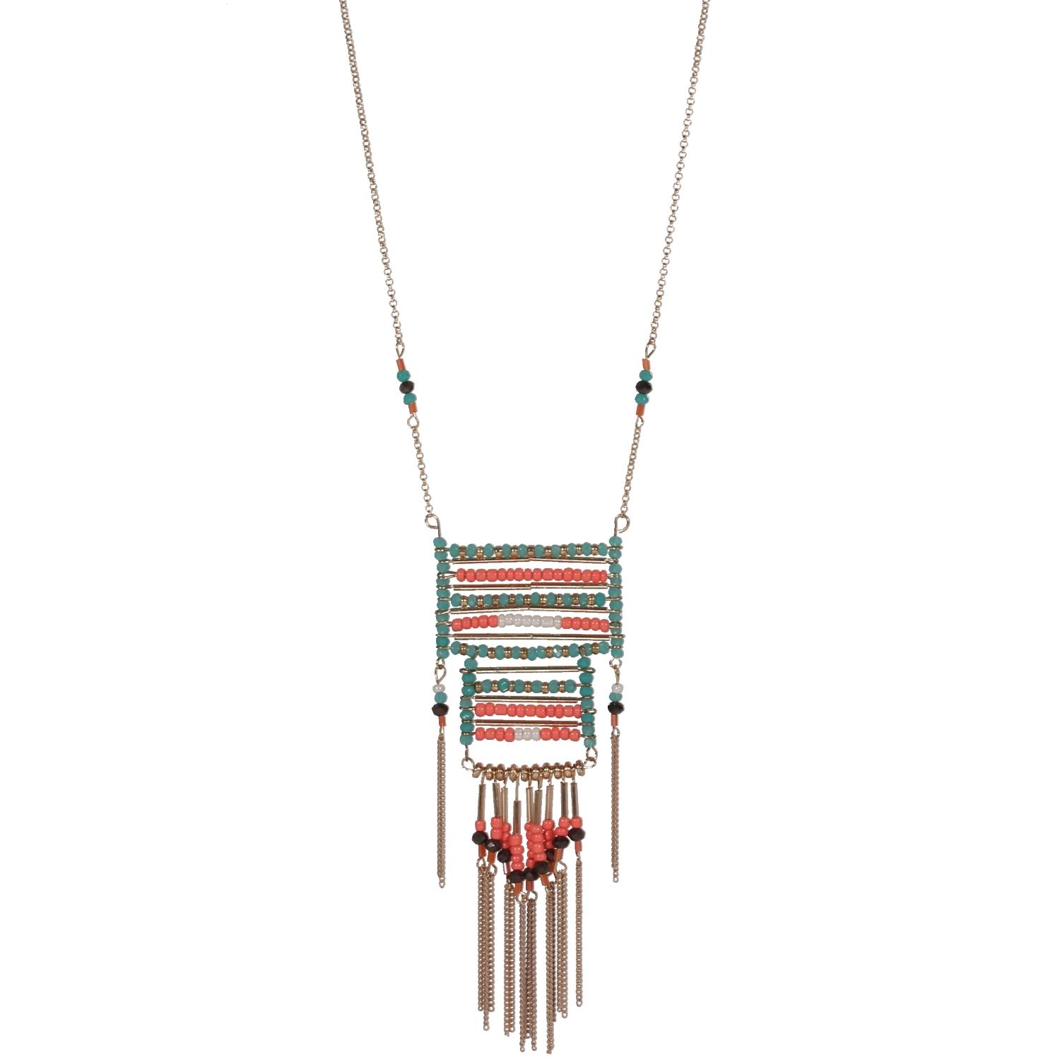Collier sautoir en métal doré, métal peint et rocaille.
