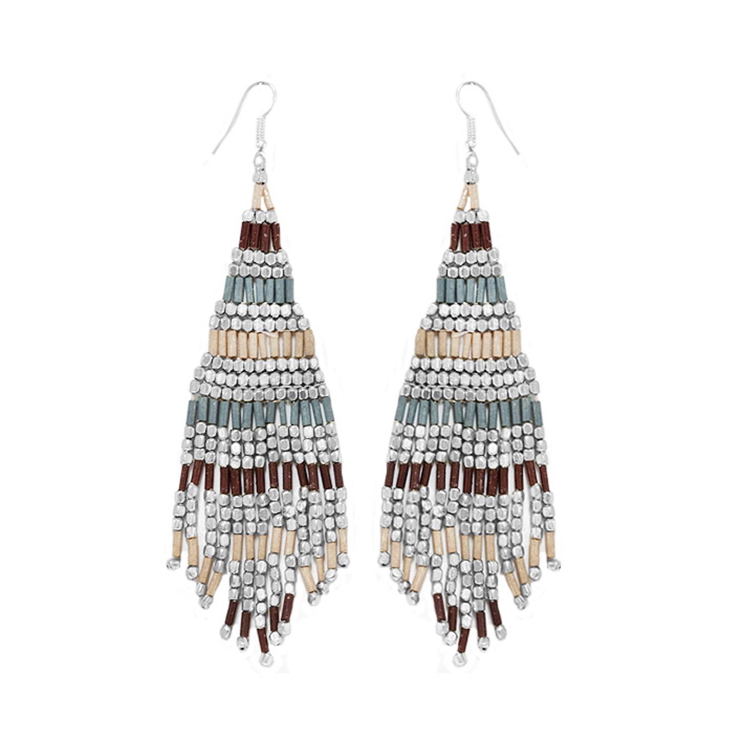 Boucles d'oreilles fantaisie en métal argenté et rocaille.