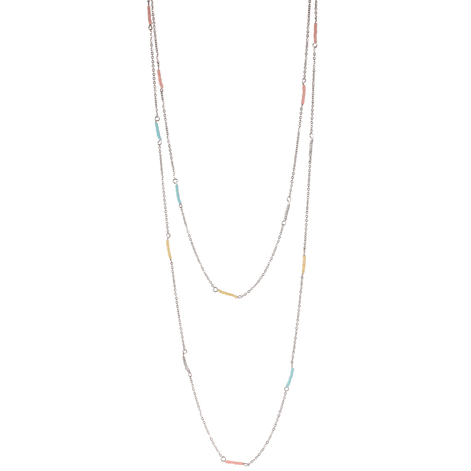 Description Collier sautoir en acier et pierres synthétiques. 2 tours. Cliquez sur une matière, un thème, une couleur ou une collection pour voir tous les articles associés.