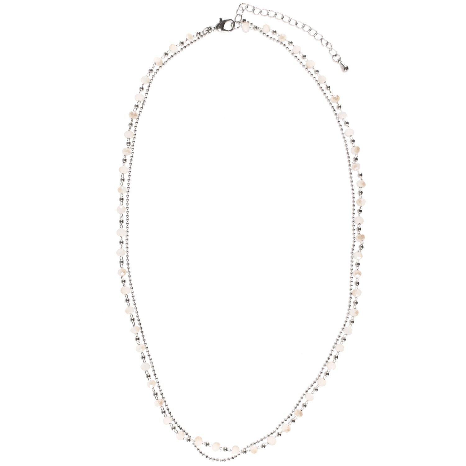Description Collier fantaisie deux rangs en métal argenté et pierres de couleur. Cliquez sur une matière, un thème, une couleur ou une collection pour voir tous les articles associés.