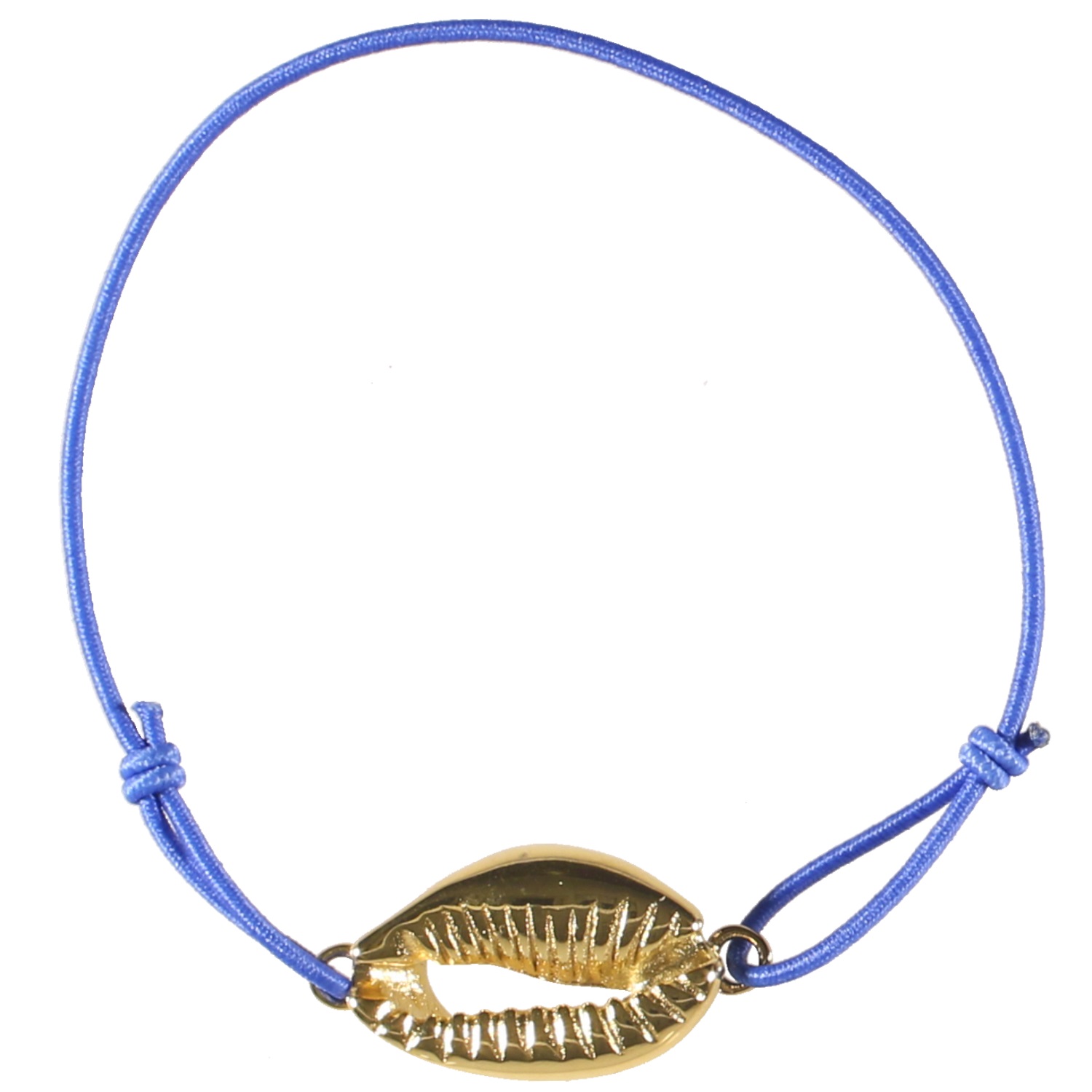 Bracelet avec cordon élastique en coton et coquillage cauris en acier doré.