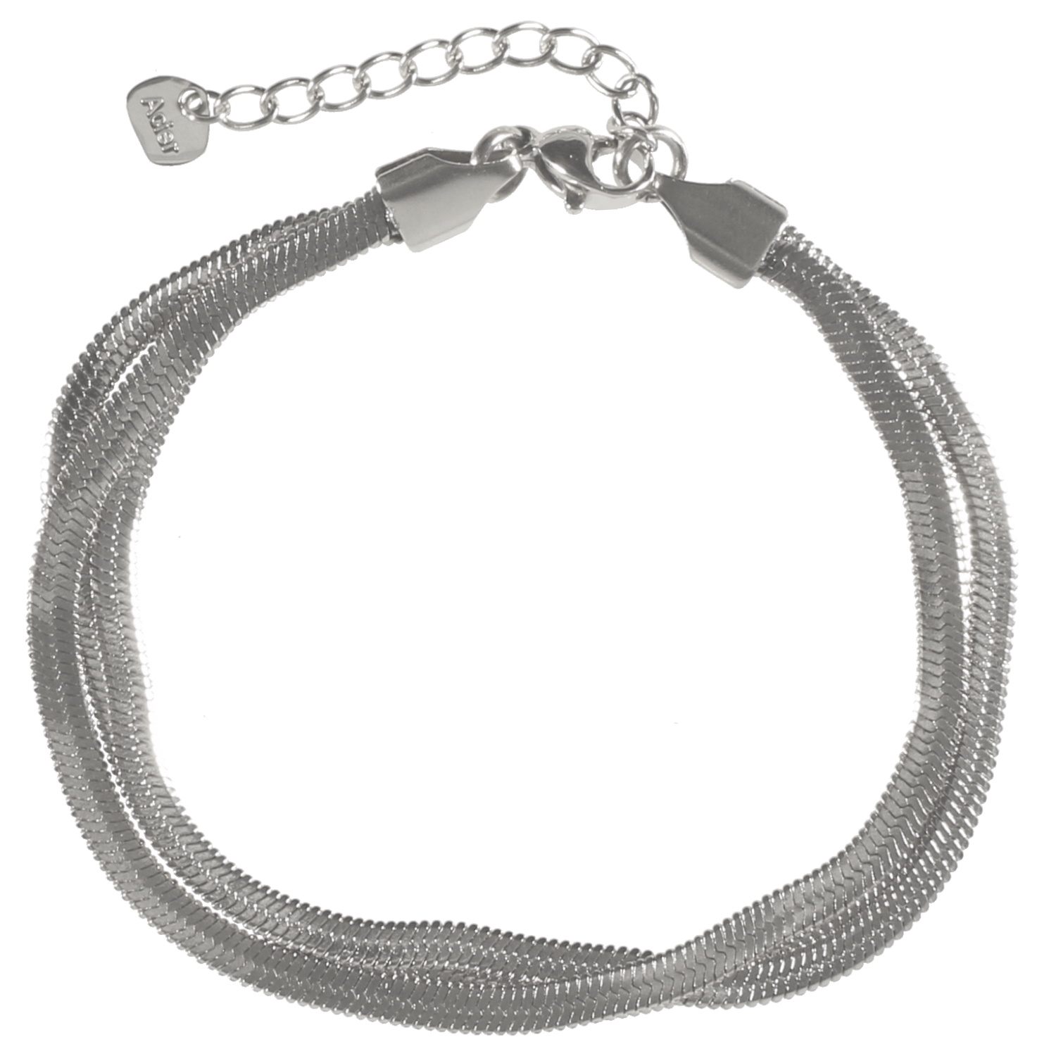 Description Bracelet triple rangs en maille miroir en acier argenté. Fermoir mousqueton avec 3 cm de rallonge. Cliquez sur une matière, un thème, une couleur ou une collection pour voir tous les articles associés.