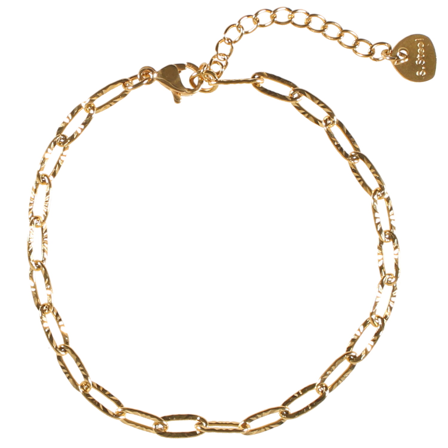 Description Bracelet composé d'une chaîne en acier doré. Fermoir mousqueton avec 4 cm de rallonge. Cliquez sur une matière, un thème, une couleur ou une collection pour voir tous les articles associés.