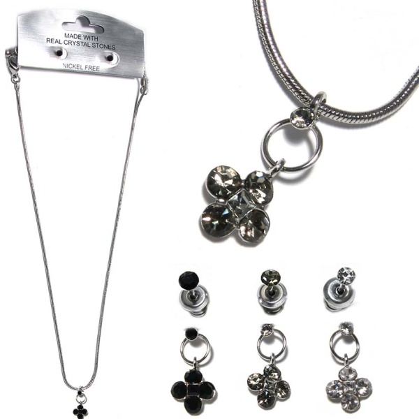 Description Parure fantaisie en métal argenté et strass composée d'un collier et d'une paire de boucles d'oreilles assortis. 3 coloris différents. Cliquez sur une matière, un thème, une couleur ou une collection pour voir tous les articles associés.