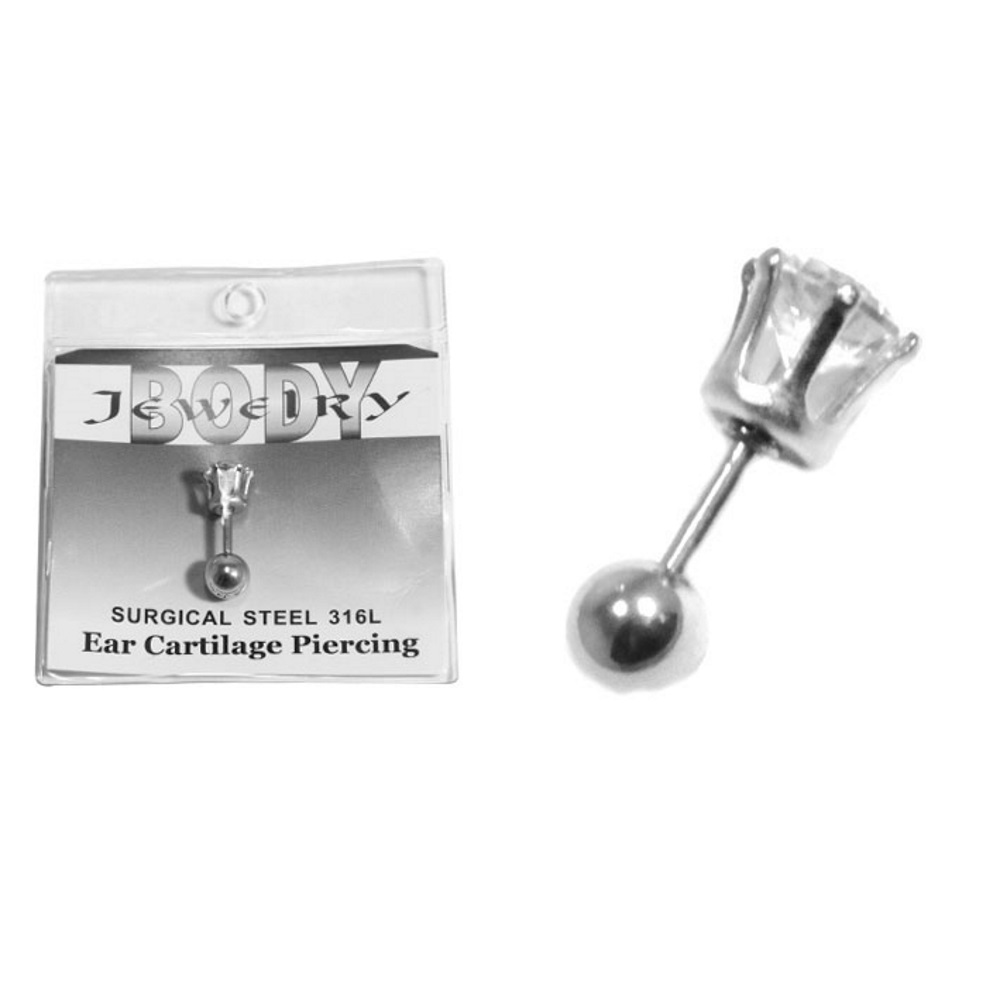 Piercing pour cartilage d'oreille en acier et oxyde de zirconium.