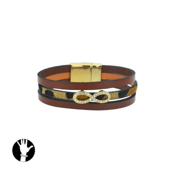 Bracelet fantaisie en métal doré, cuir et verre.