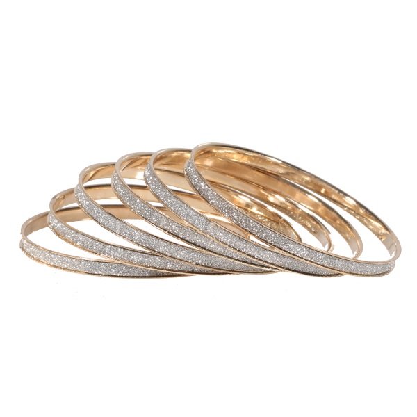 Lot de 6 bracelets joncs rigides fantaisie en métal doré et strass.